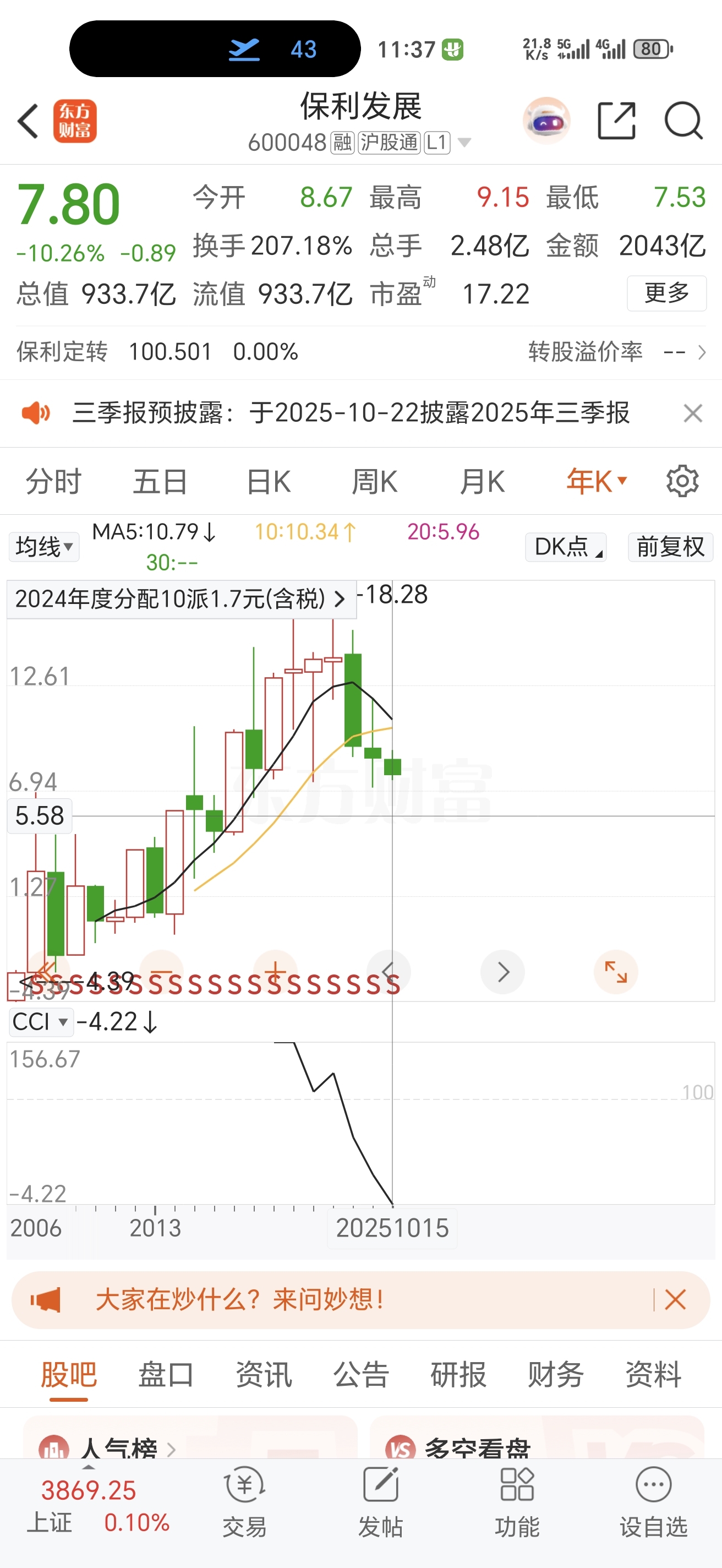 $保利发展(SH600048)$ 房地产板块今年都涨了20%,该回调了,希望保利发展顺势跌破6块。保利发展每个月的销售数据都在跌,完全止不住。而其他房地产都在涨,懂得自然懂,散户们下午继续抄底,今天才跌一个多点。