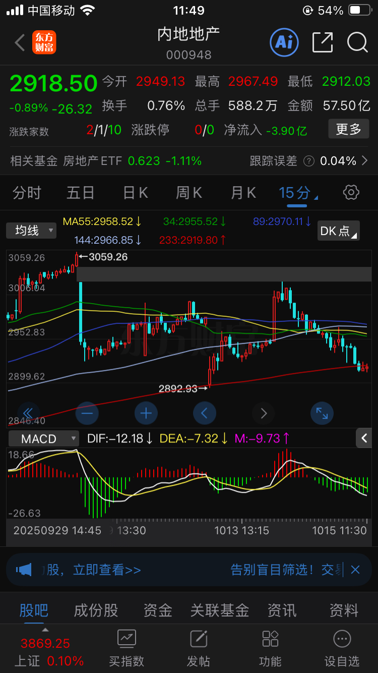 我的心情很沉重——板块和上证15分钟级别,都回到了该级别红底裤均线。是万科60分