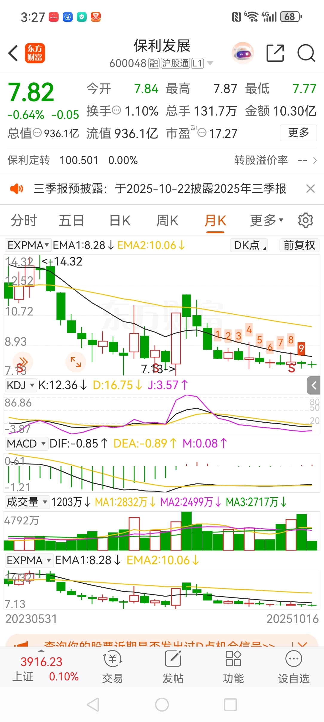 又是13个月的调整上升与房地产股几乎无关,买卖金地集团还小赚二次,万科,保利一点