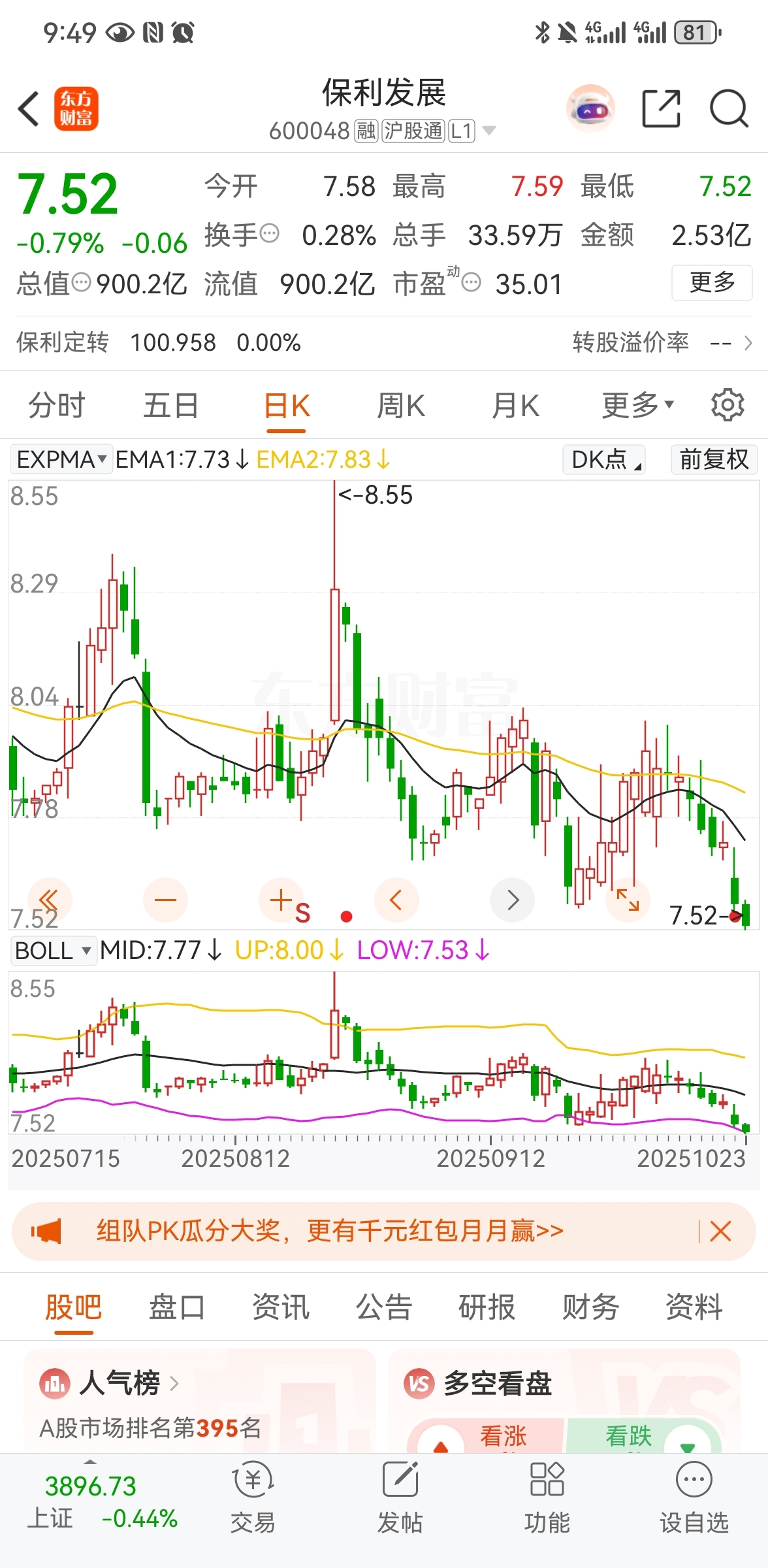 $保利发展(SH600048)$ 真正的下跌还没开始,看到8.55那根天线没,起码要低那天线两块钱,6.55左右见底。