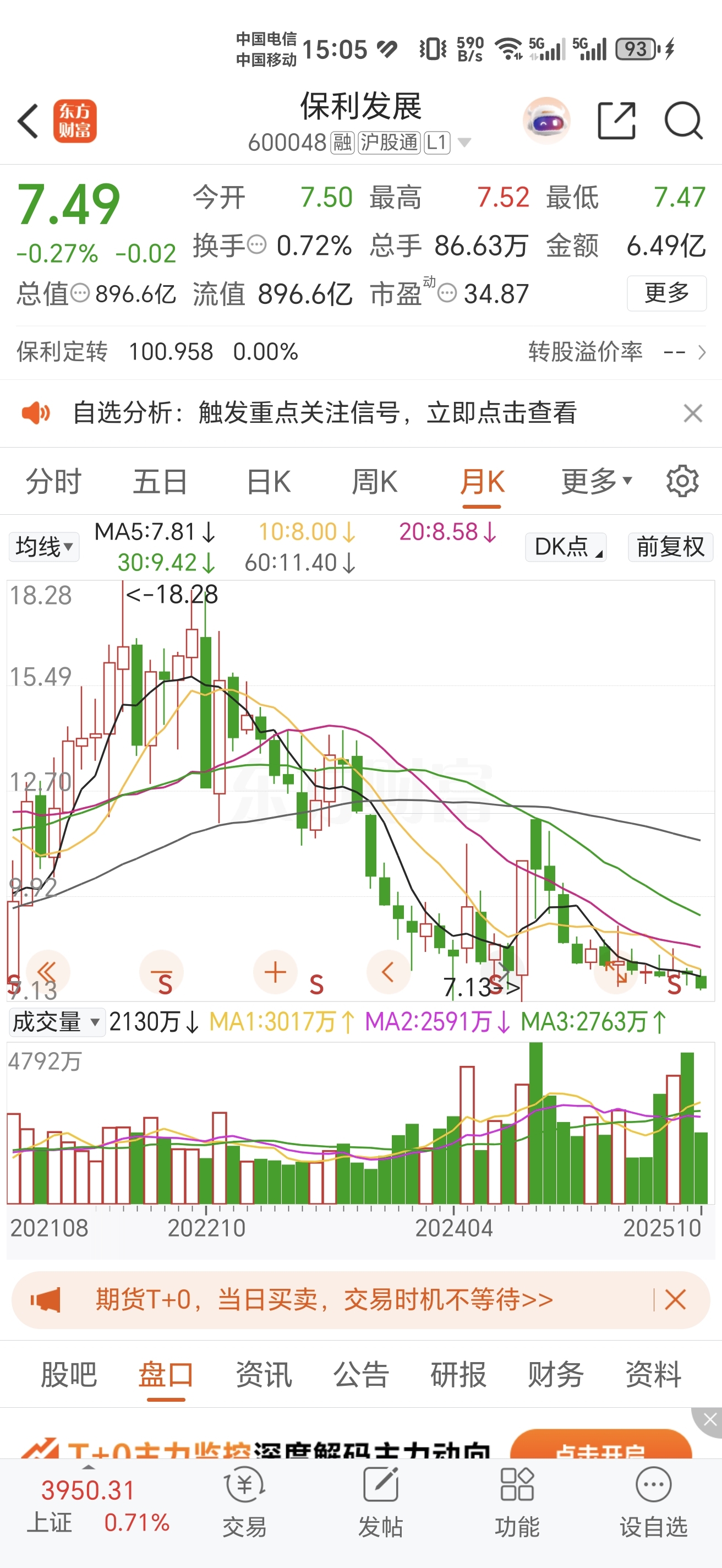 $保利发展(SH600048)$ 希望下周跌破7.13,未来5年是科技的天下,消费类都不会有好表现,看看茅台就知道了,地产只会更差。