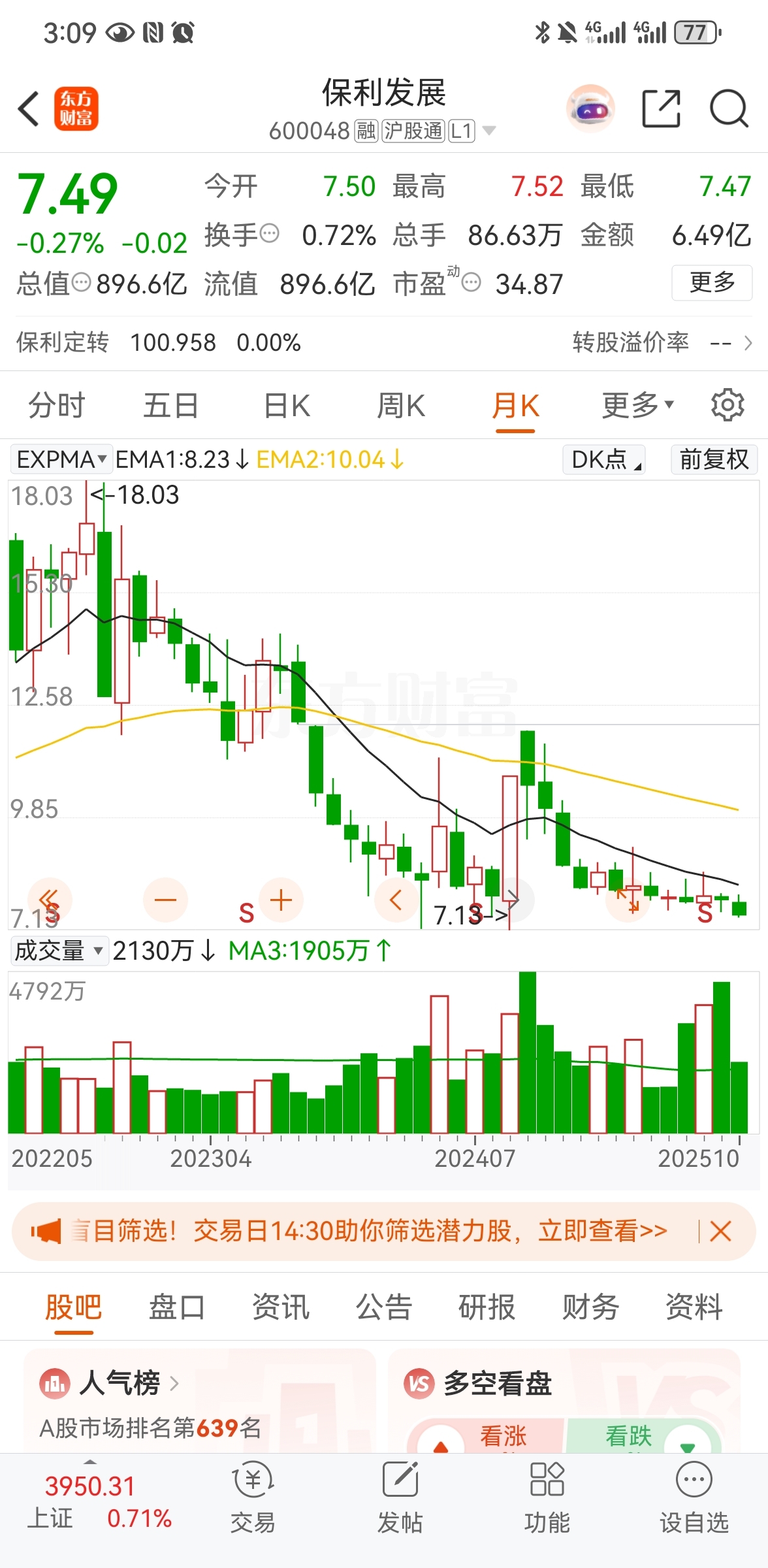 $保利发展(SH600048)$ 去年924买了保绿地惨的房子,到今年跌了三四十万,股票要不是924行情拉了一下早跌破6块钱了。