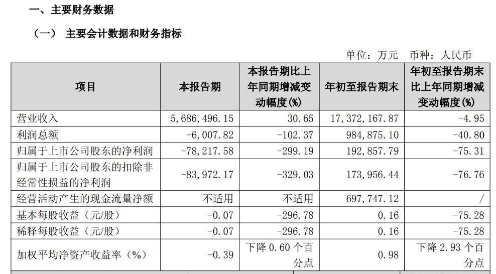 报告显示,保利发展第三季度营业收入568.65亿元,同比增长30.65%;利润总额为-6007.82万元,同比下降102.37%;归属于上市公司股东的净利润为-7.82亿元,同比下降299.19%;基本每股收益为-0.07元,同比下降296.78%。