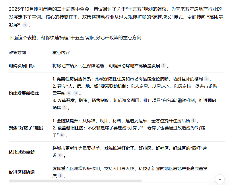 2025年10月刚刚闭幕的二十届四中全会,审议通过了关于“十五五”规划的建议,为未来五年房地产行业的发展定下了基调。核心的转变在于,政策将推动行业从过去规模扩张的“高速增长”模式,全面转向 “高质量发展” ,保利发展未来该如何发展呢?