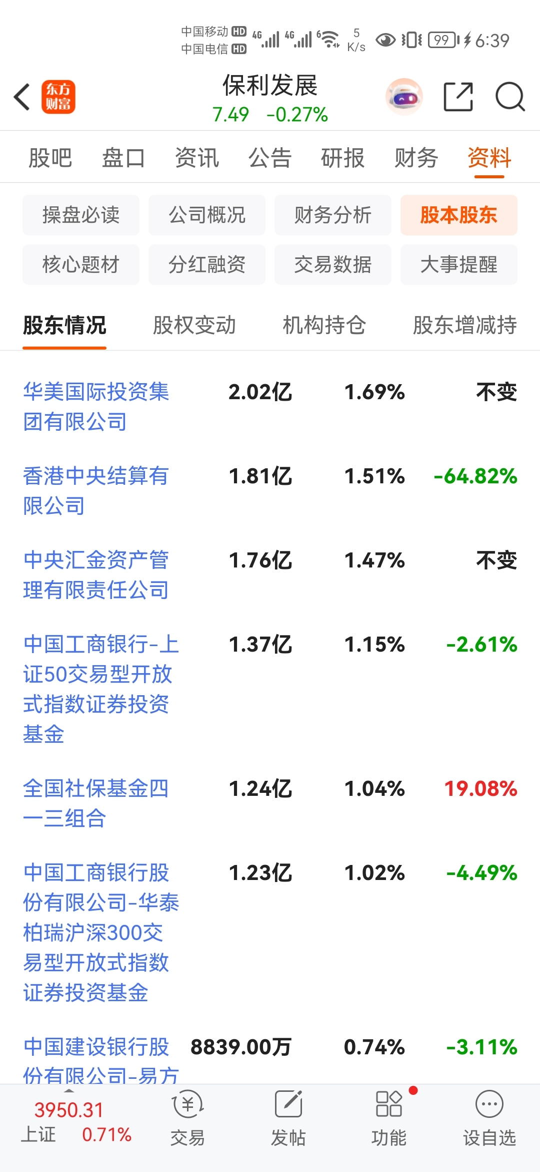 我估计大部分散户是因为看到社保加仓保利所以一直抄底,殊不知这是个巨大的阴谋。社保