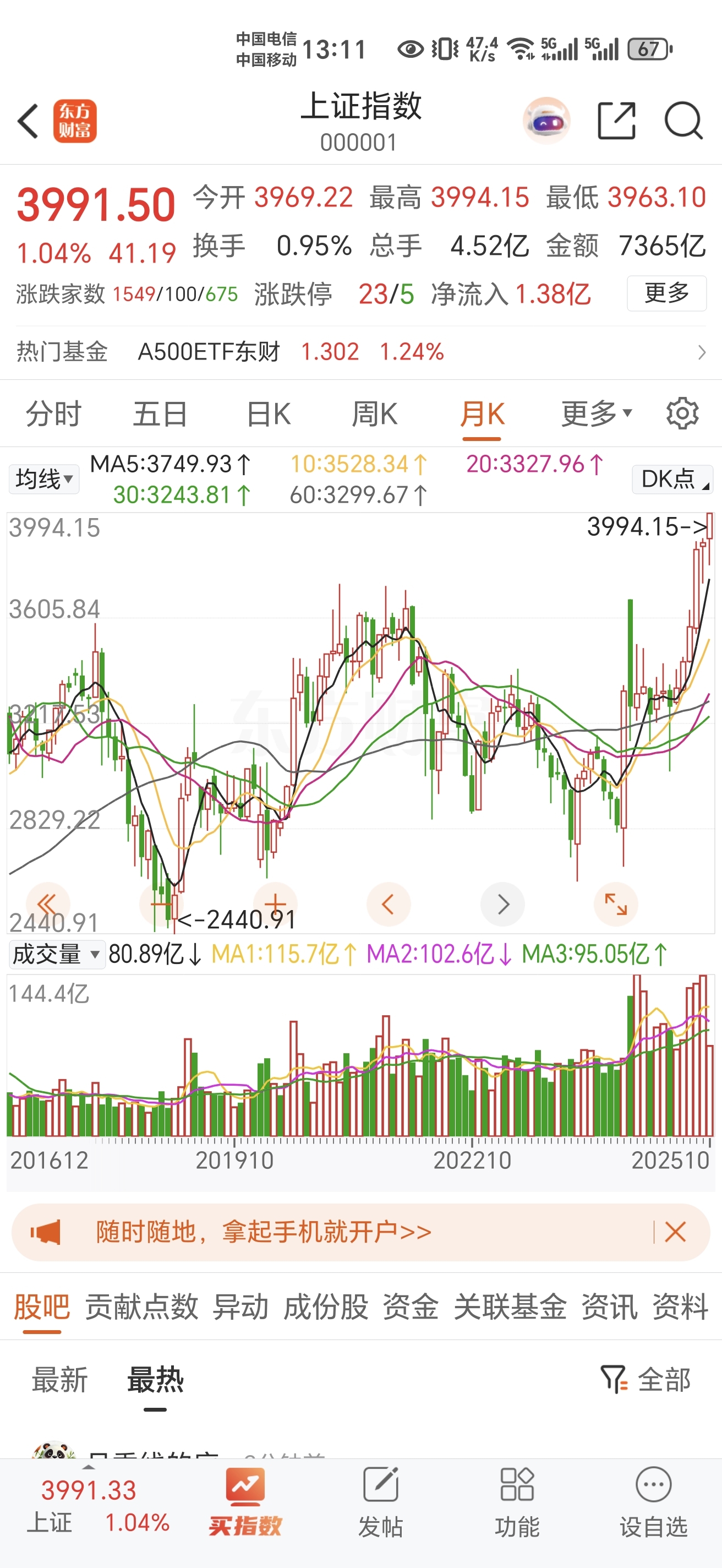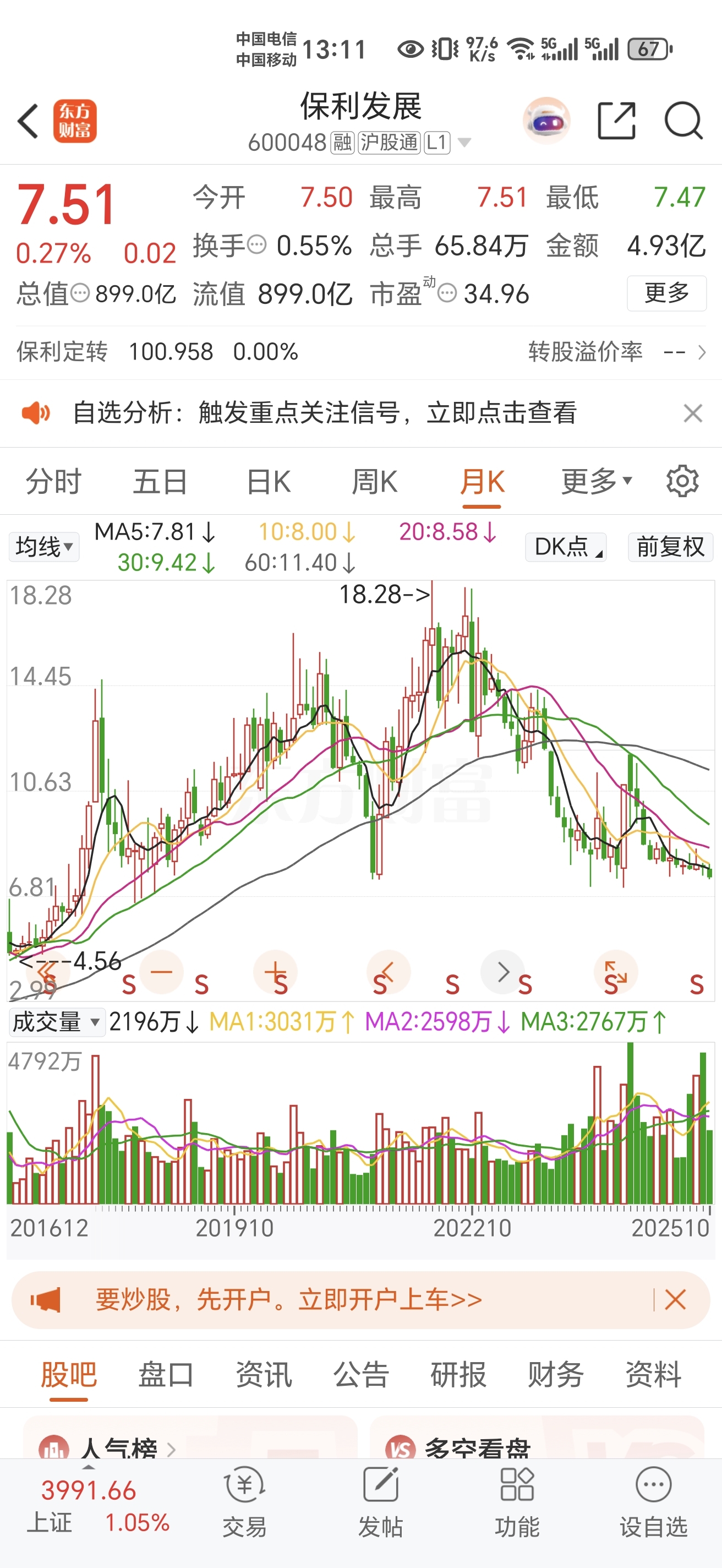 上证指数涨到10000点,保利发展依然在7块。散户们速度抄底。