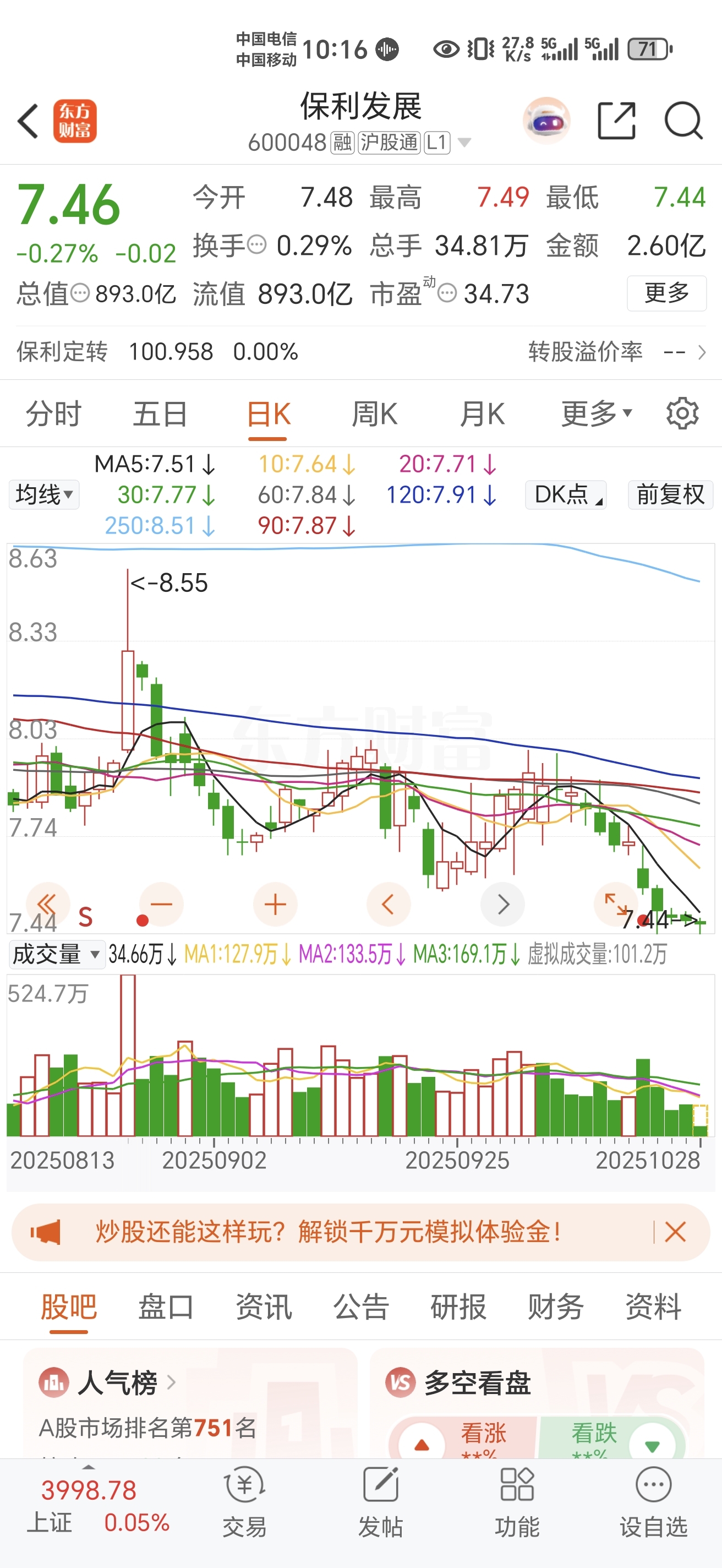 $保利发展(SH600048)$ 漂亮,符合逾期说好了的六连阴,今天第五天,大盘板块继续起飞,保利发展继续创新低,继续三倍做空。
