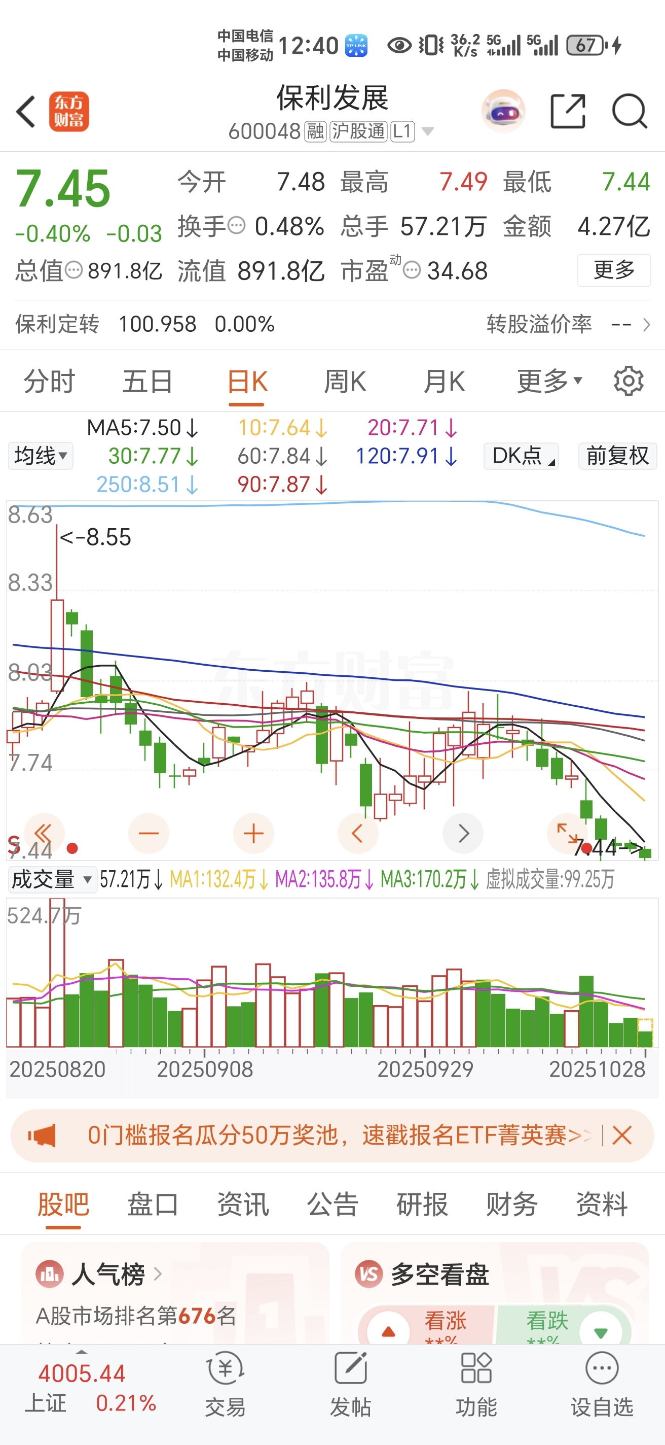 $保利发展(SH600048)$ 大盘四连阳保利发展五连阴。说好的六连阴明天兑现。然后一分钱红一天继续六连阴,散户们不要相信我,以免卖飞了。
