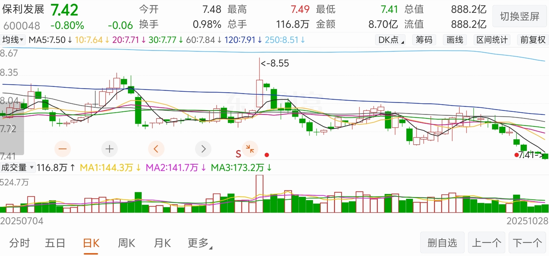 $保利发展(SH600048)$ 每个月都要来个十连跌,央企啊,市值管理啊!