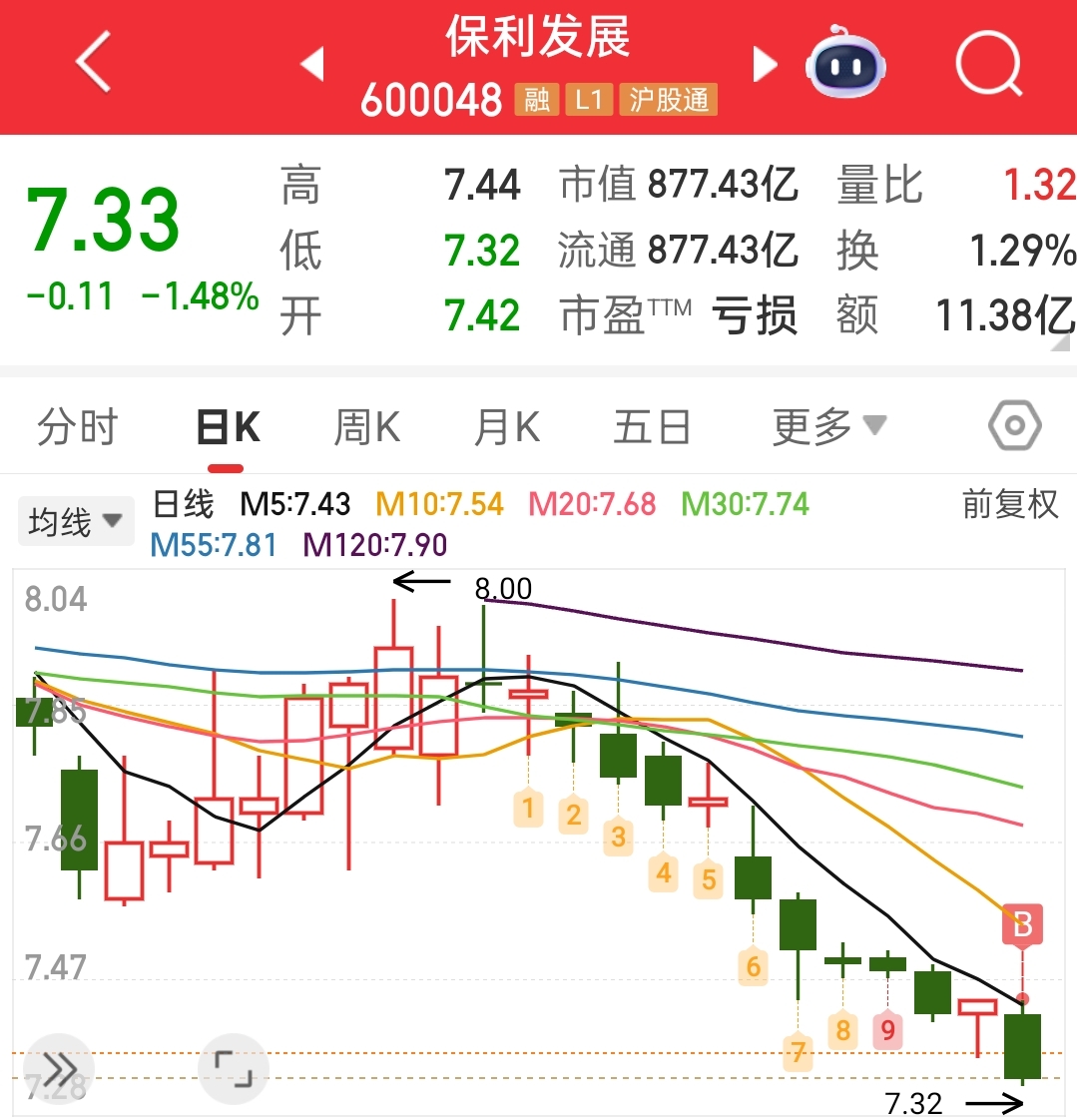 $保利发展(SH600048)$ 今天过来打个底,不过刚进就套,有点不应该啊,下来跌2毛1补