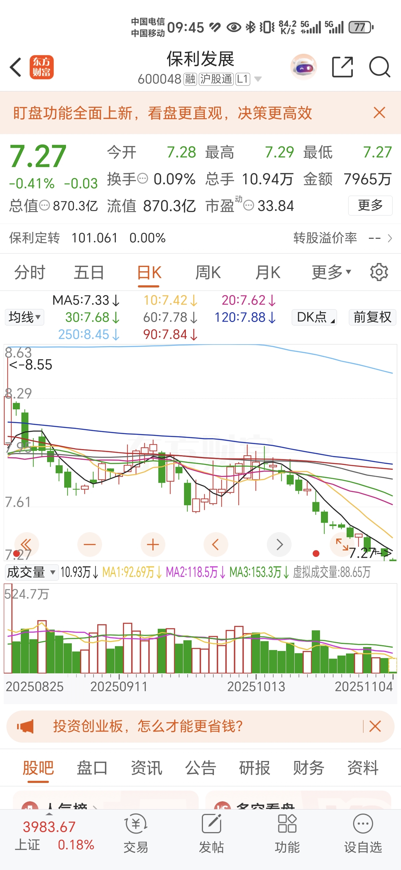 $保利发展(SH600048)$ 预测今年上证指数涨到4500点,保利发展跌破6块,加油马上就是倒数第一名,倒数第一名也是第一名光荣,庆祝新党委书记到来。