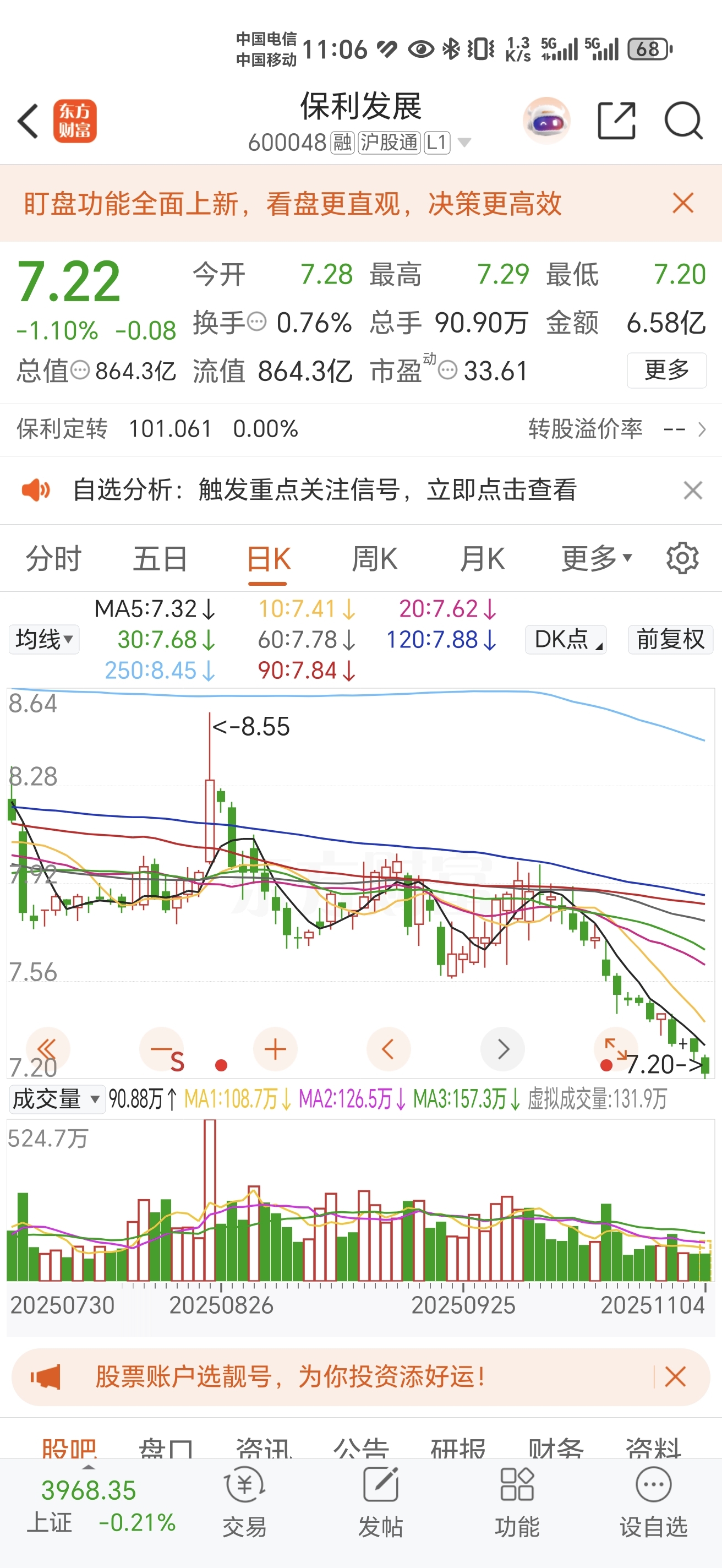 $保利发展(SH600048)$ 哈哈漂亮,无知得散户和主力对抗,重头戏还在后面,还没加速下跌。