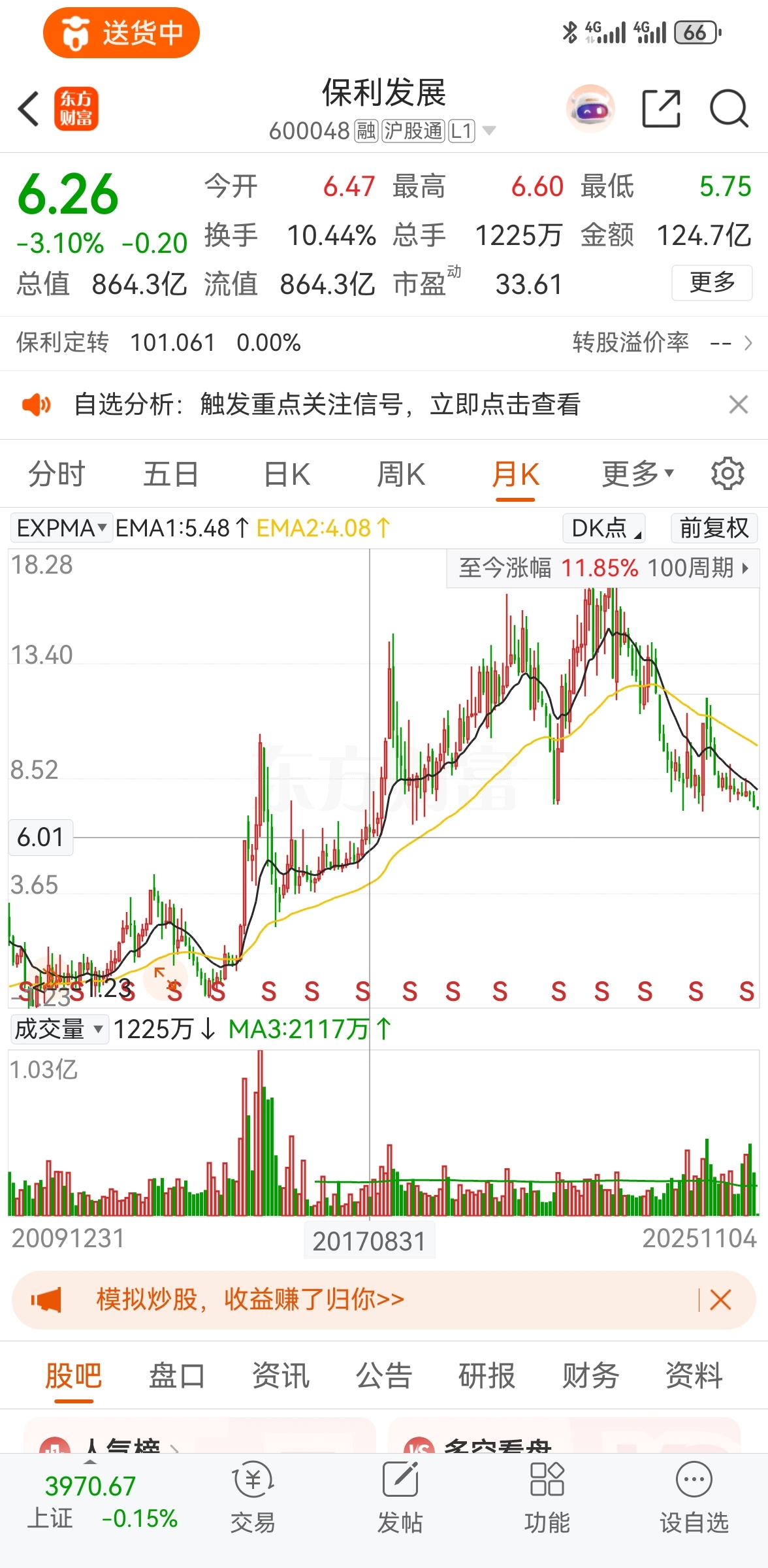 $保利发展(SH600048)$ 千万不要心存幻想,今年马上就要结束了,明年下半年探底结束,底部6块钱左右。
