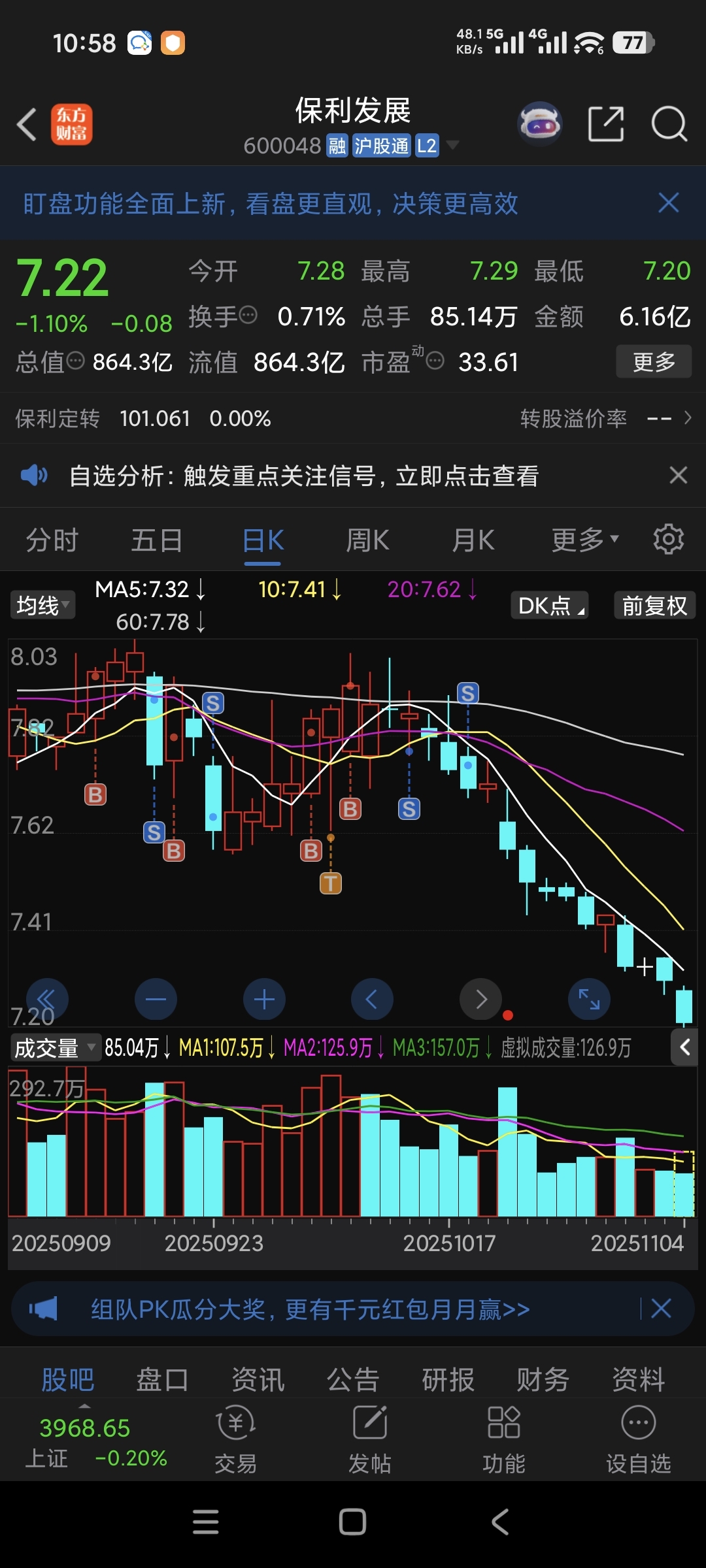 还好我跑得快呀。真是爽的你们不得了。反正我买进去,预计国家降息的。我一看跑到5日