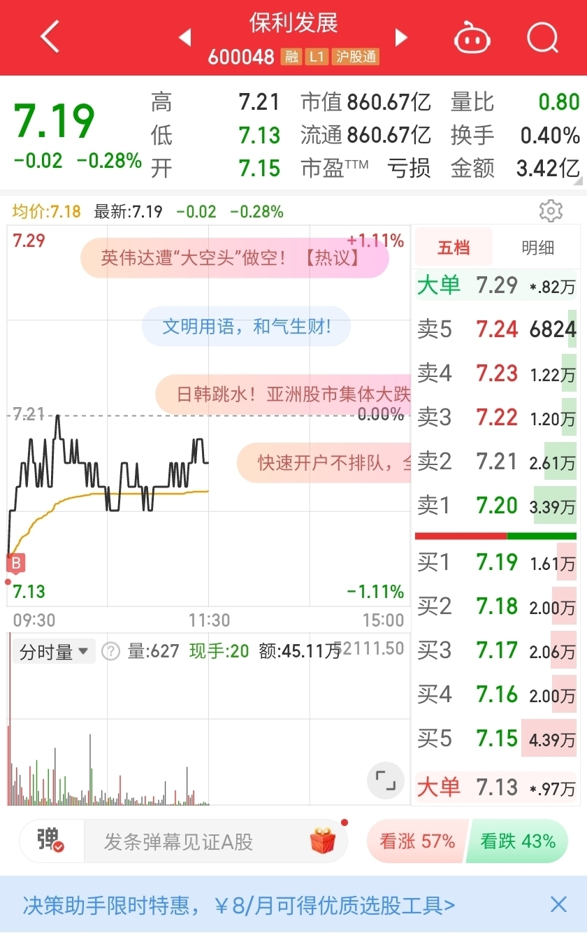 我把今年的盈利都买它了,因为它叫保利!保住利润!任其夹板吸筹也好!打压挖坑也好!