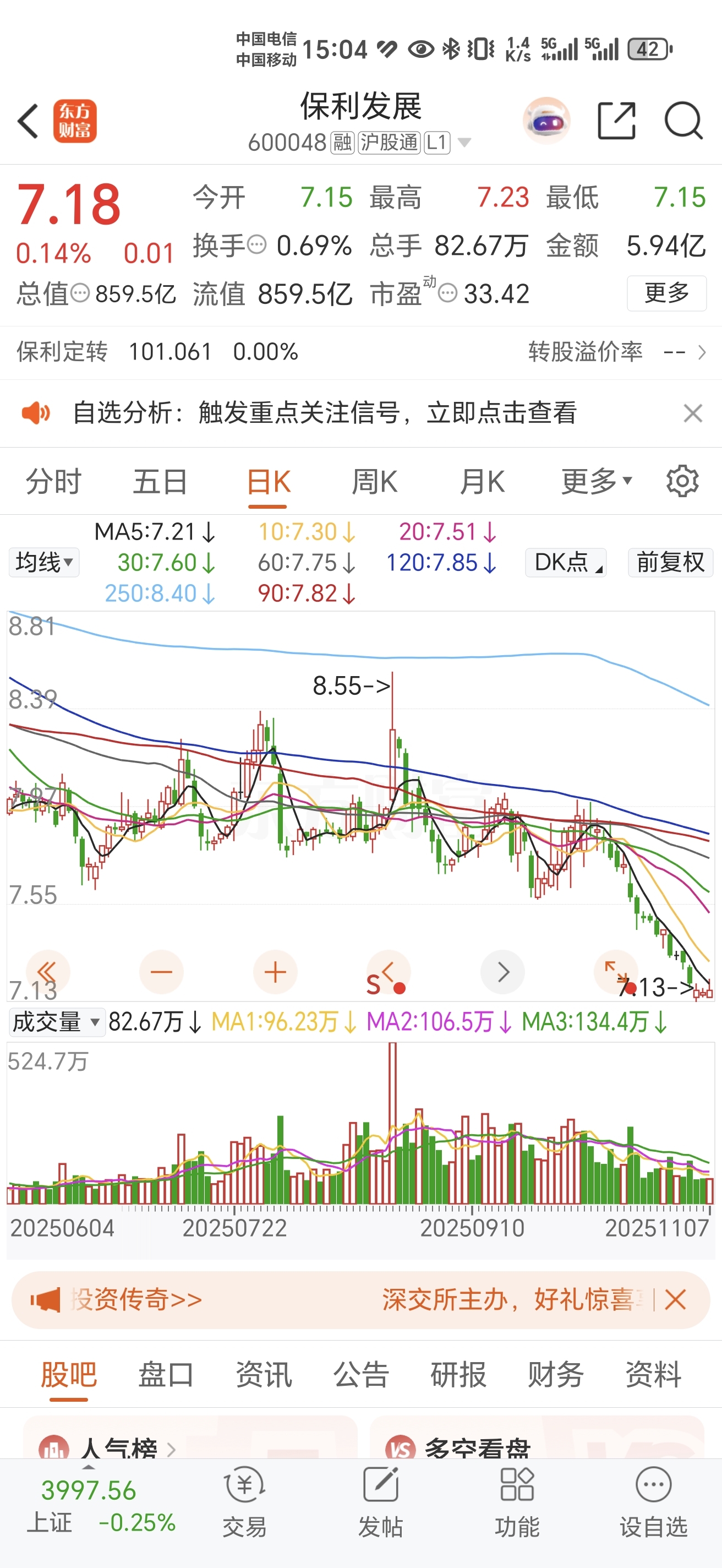 $保利发展(SH600048)$ 符合预期涨一分钱收个红盘,下周就可以继续跌了。