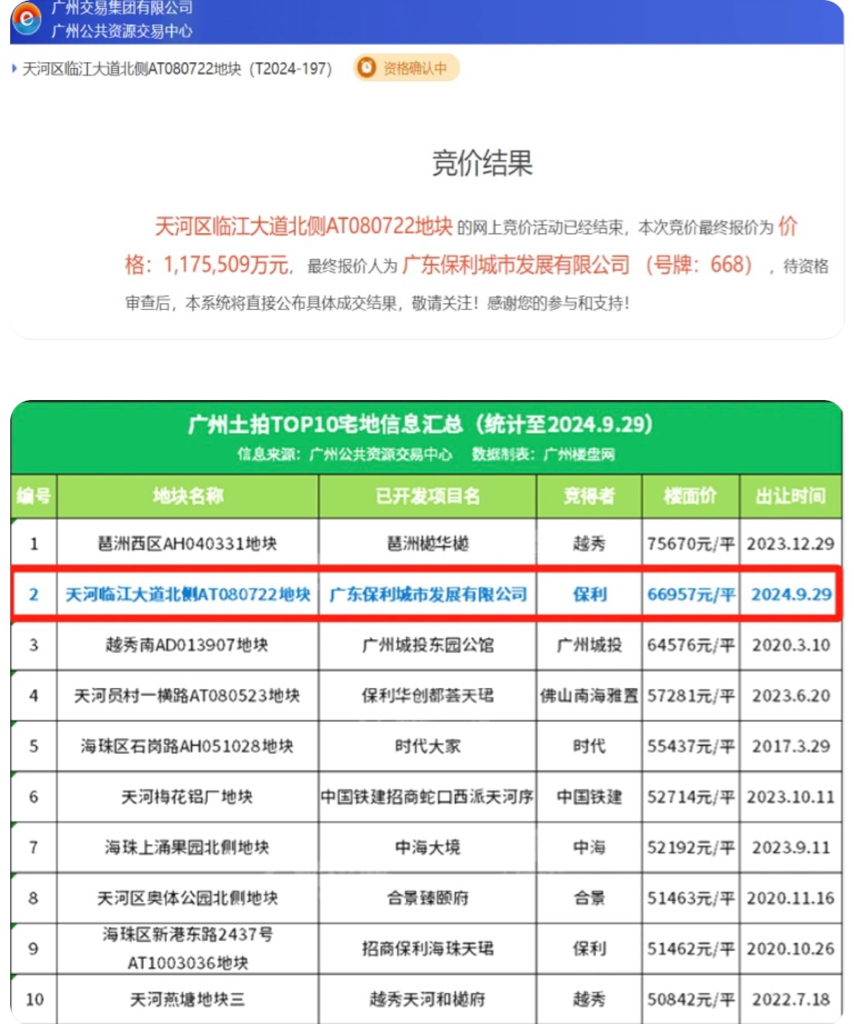 保利拿地117亿楼面价6.7万项目毛利约120亿