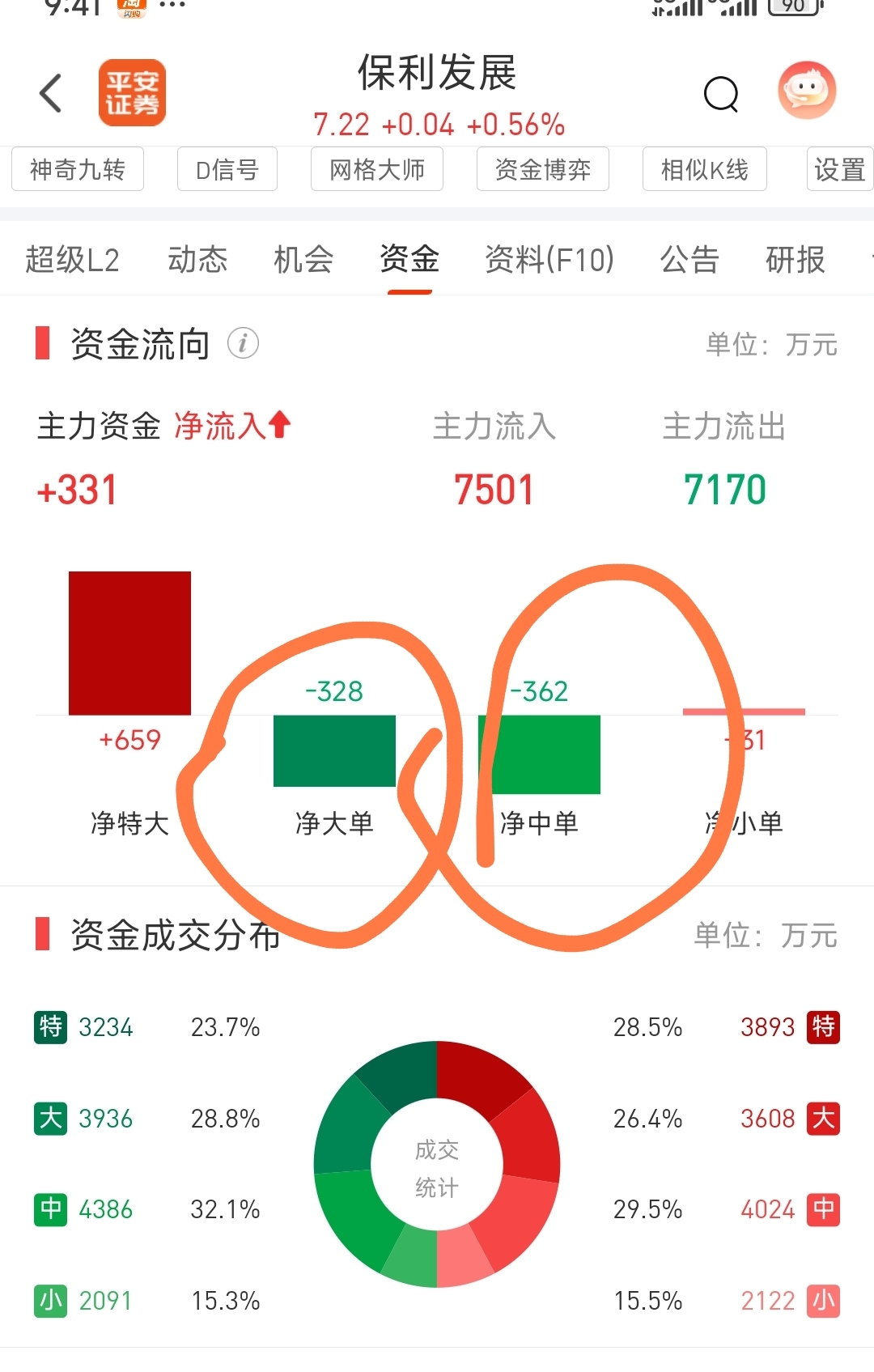 ,截止9:40,保利发展主力资金依然在通过净小单出货,买入请注意套牢风险!!!