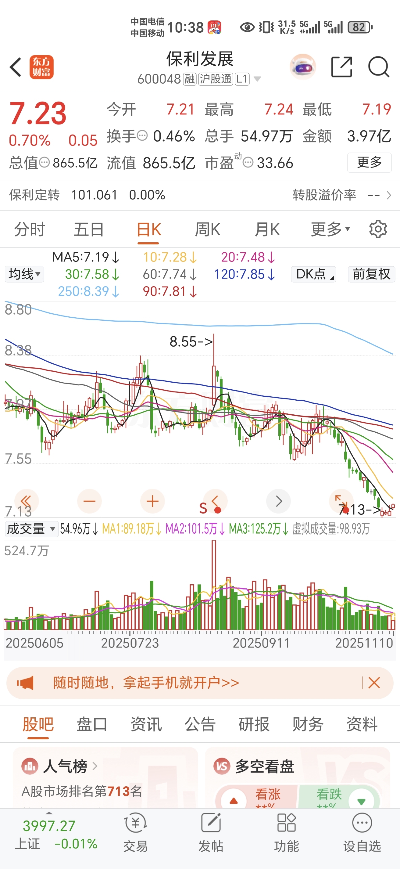 今天保利小亏,招商起飞。继续做空保利,做多招商。散户们你们继续抄底保利。