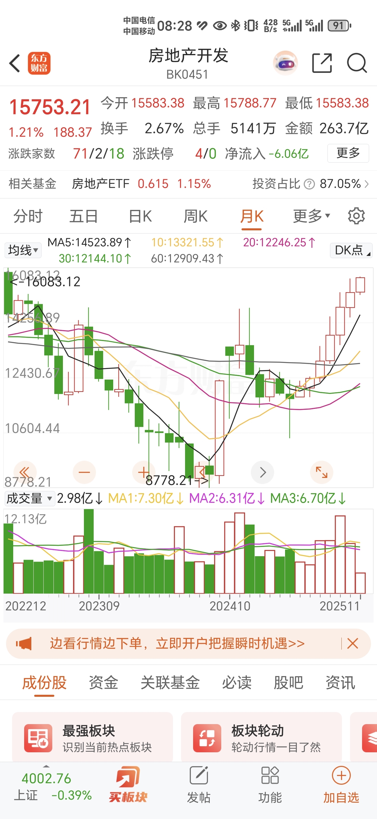 房地产板块连涨七个月昨天又创了新高,回调时间越来越近了。