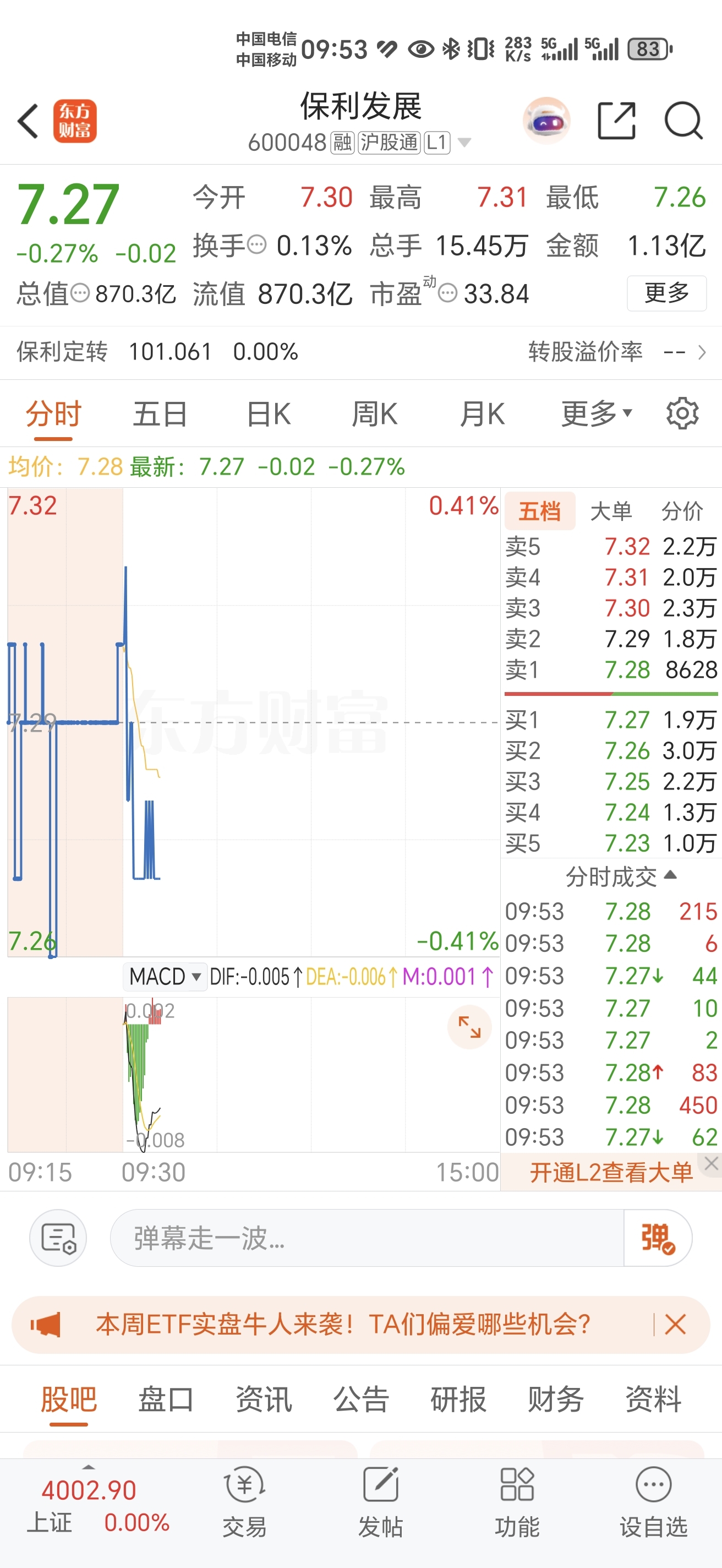 $保利发展(SH600048)$ 大盘板块开始起飞,保利速度跳水,前两天涨的今天一天跌完,散户速度抄底不要停。哈哈继续三倍做空。