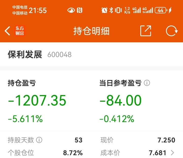 $保利发展(SH600048)$ 不管后面涨跌,最多一成仓位,绝不割肉,亏完就算了。