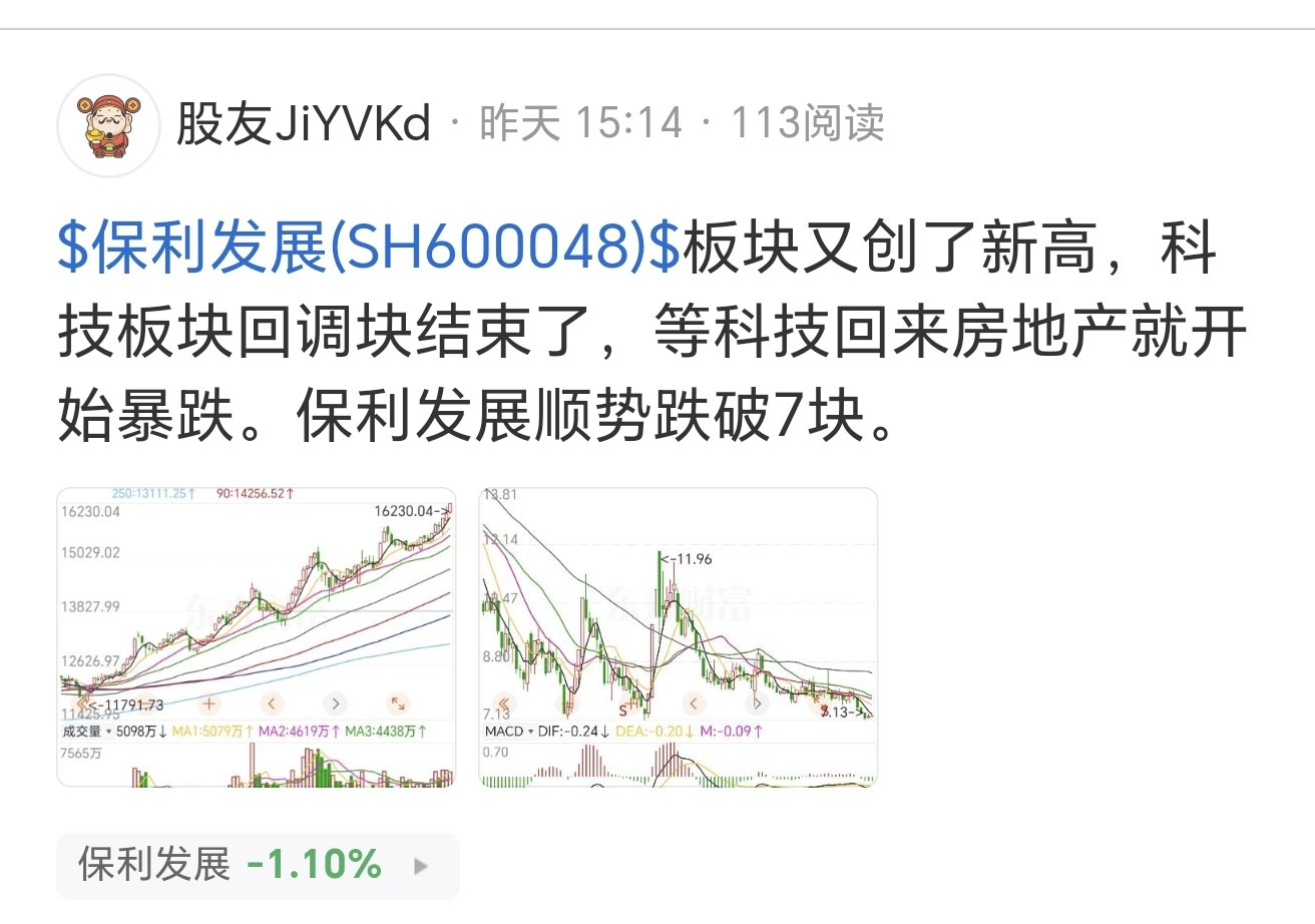 $保利发展(SH600048)$ 说好的科技股重回上升趋势。漂亮,大盘起飞,保利发展速度跳水。