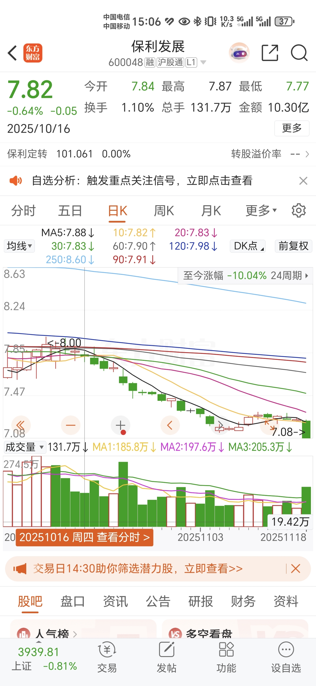 $保利发展(SH600048)$ 漂亮最低收盘,明天低开低走,今天抄底的3年别想解套哈哈。