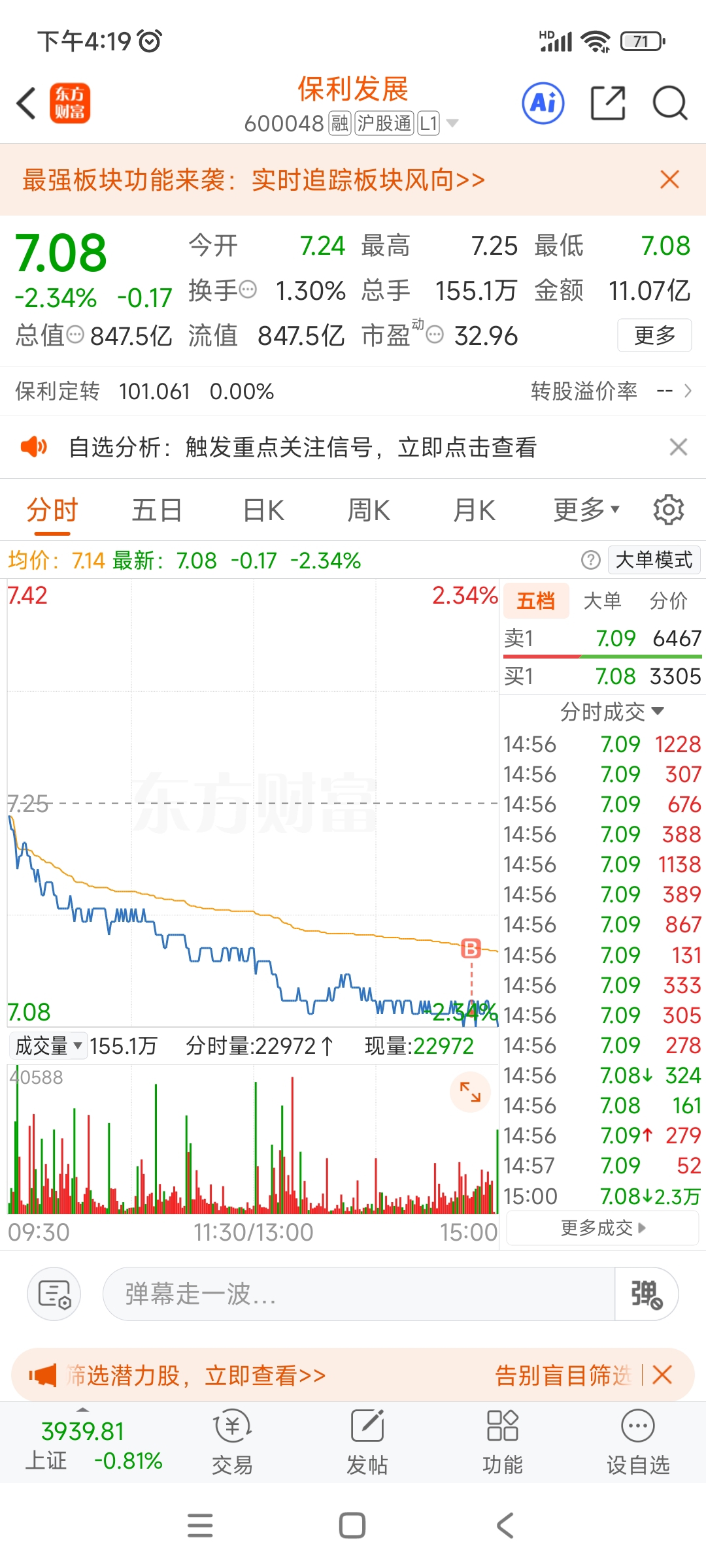 $保利发展(SH600048)$ 这个确实狠,7.09抄底都被套