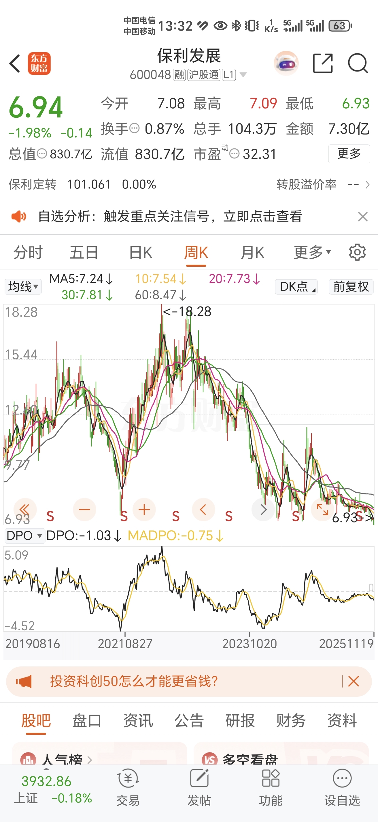 $保利发展(SH600048)$ 第一目标位跌破7块已经完成,下一目标位6.5本月到,年底跌破6块,立贴为证。散户们继续抄底。