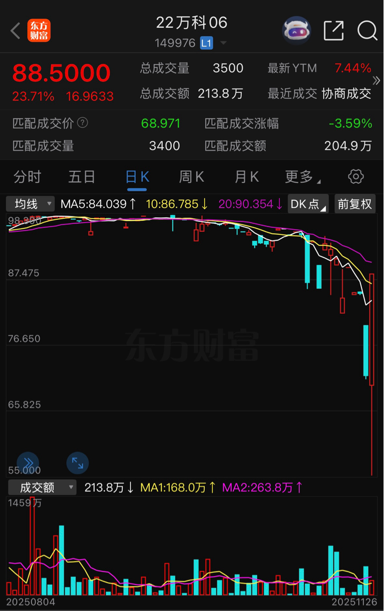 万科债价格大逆转