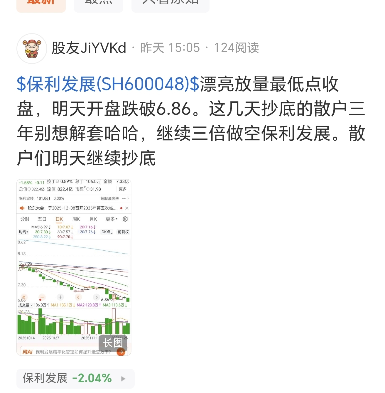 $保利发展(SH600048)$ 漂亮,万科已经暴雷,坐等保利暴雷哈哈,继续三倍做空,今天十个点收益。