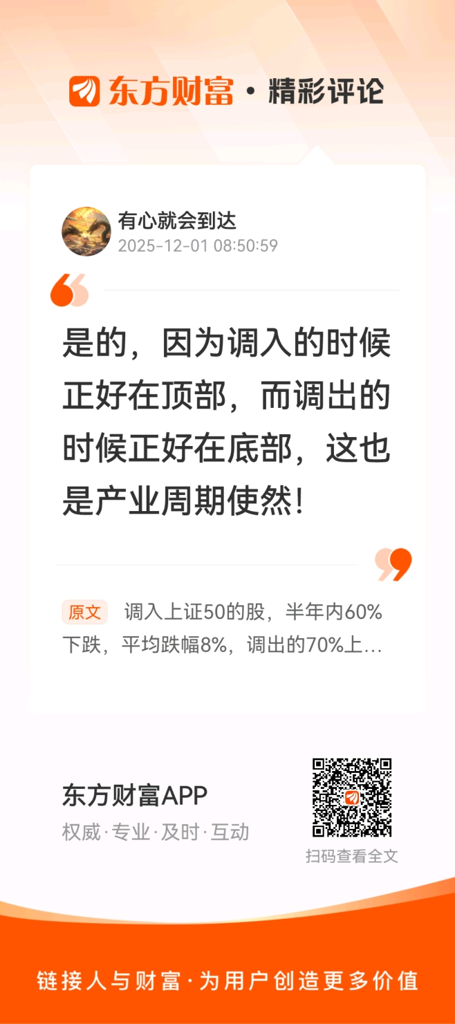 调入上证50的股,半年内60%下跌,平均跌幅8%,调出的70%上涨。还有人说利空,股价成这样就是上证50压的,你们看招蛇有人压吗