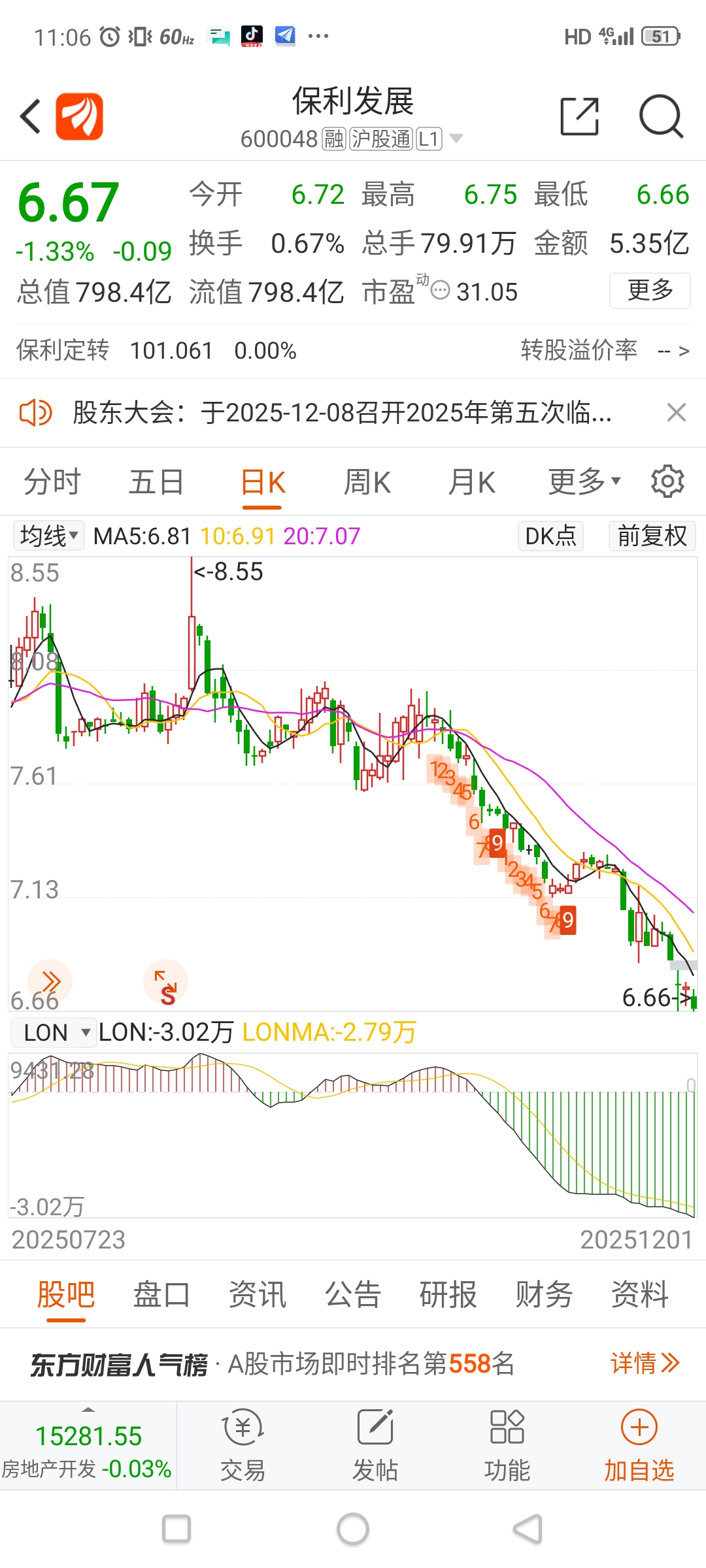 $保利发展(SH600048)$ 低位利空便是利好,6.66已挂单往成交,求教育