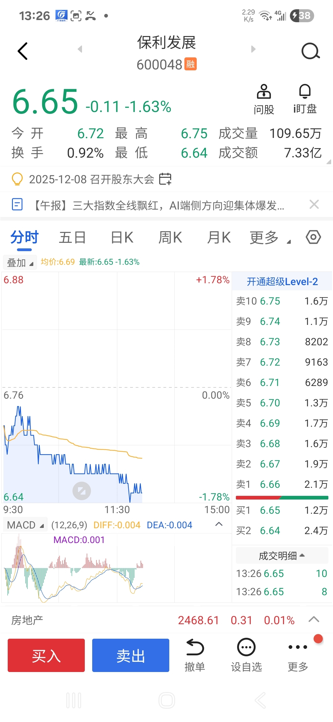 $保利发展(SH600048)$ 6.70以上挂的撤了吧,没用的。