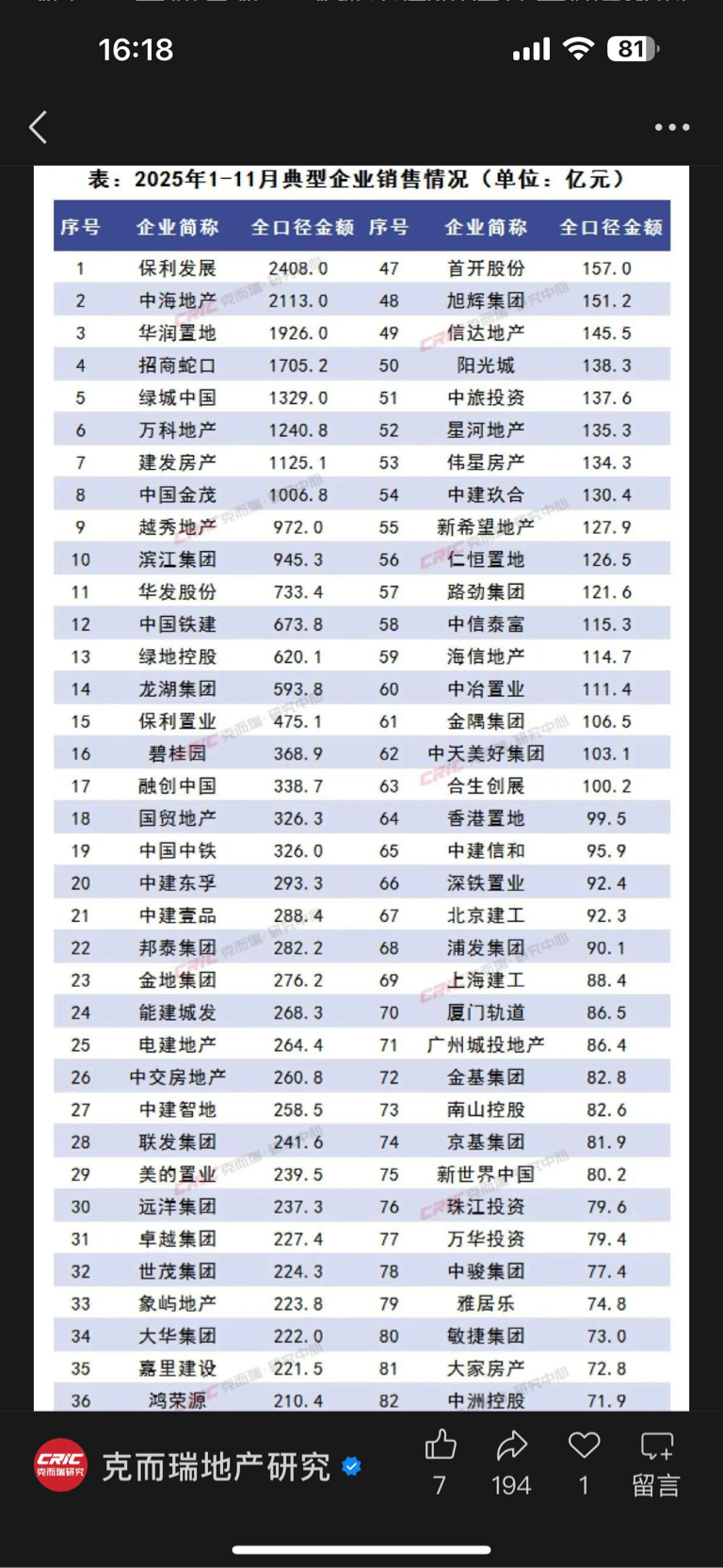 $保利发展(SH600048)$ 你敢信?十一月数据这么差?面粉厂100亿是假的吗?