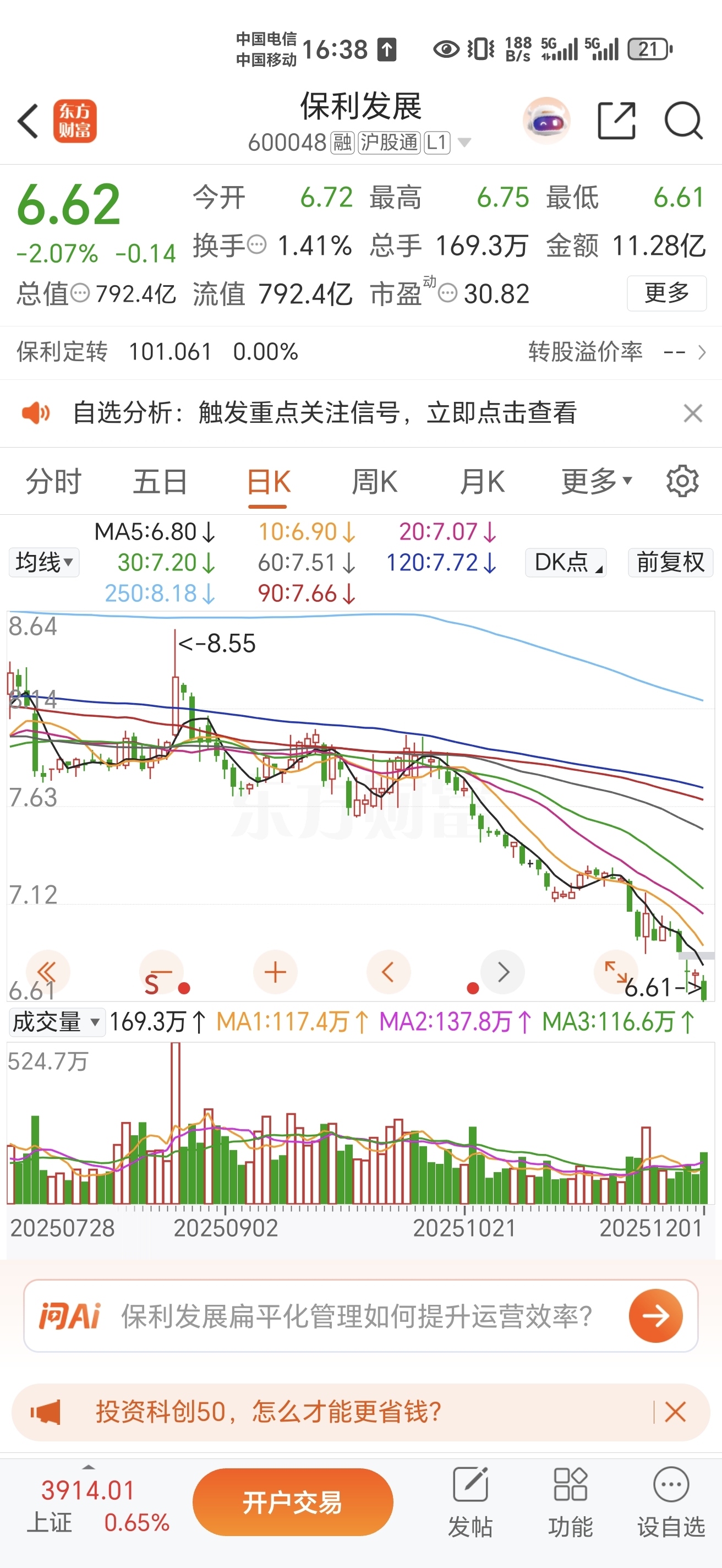 $保利发展(SH600048)$ 今天走势符合预期,明天有可能收个平盘,后天开始继续跌,快得话12号之前跌破6块,春节前跌破5块。最终目标价3块。
