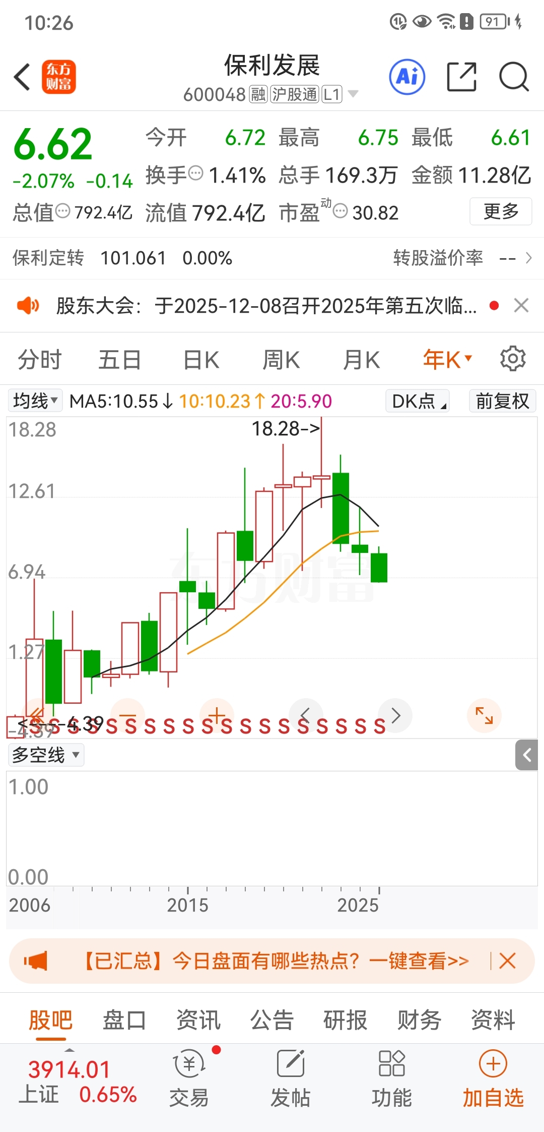 $保利发展(SH600048)$ 这是年线,自己体会吧