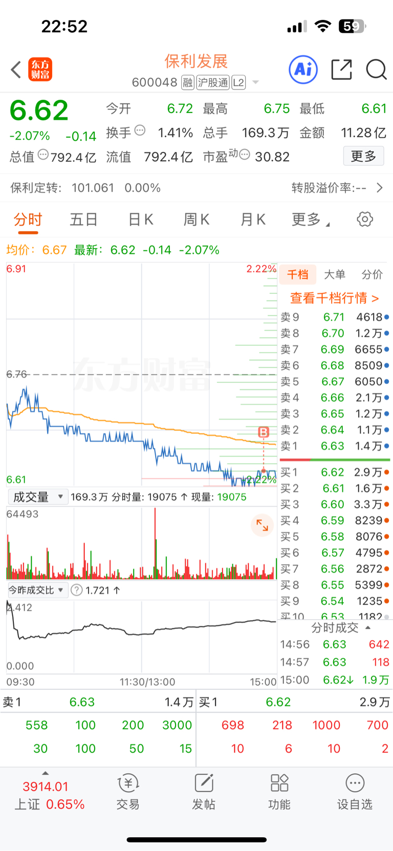 $保利发展(SH600048)$ 今天抄底明天有肉吃吗