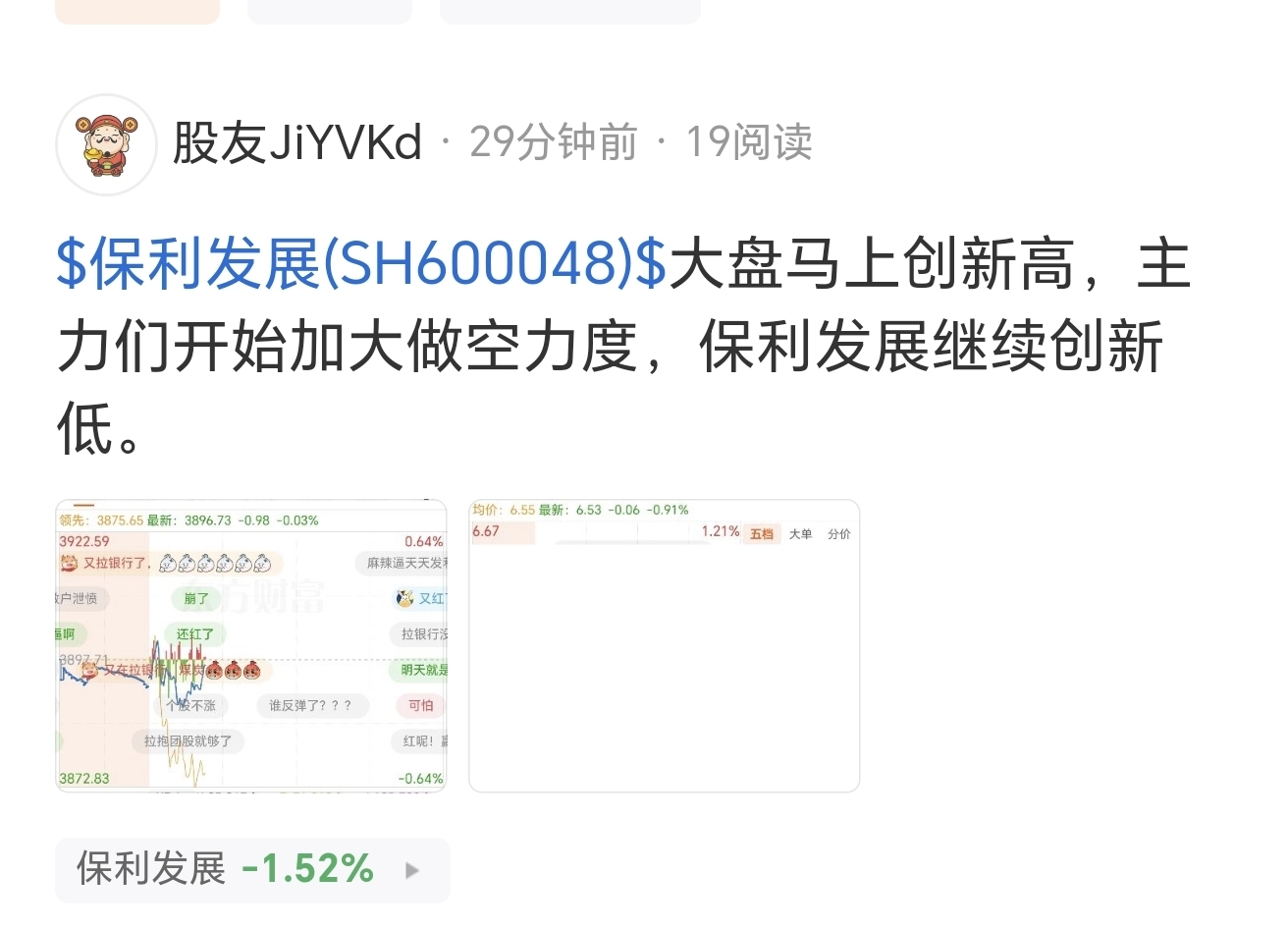 $保利发展(SH600048)$ 漂亮,主力们这么快就收到消息了,招商蛇口继续起飞,保利发展继续创新低哈哈。