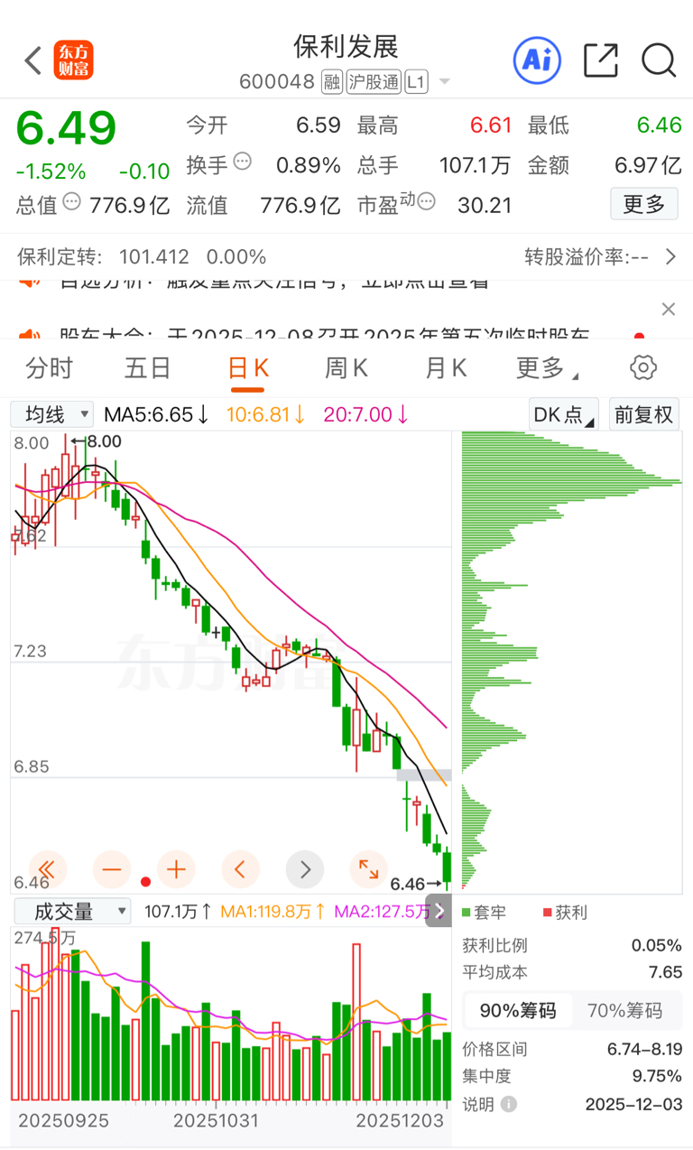 $保利发展(SH600048)$ 保绿发展筹码分布,壮观
