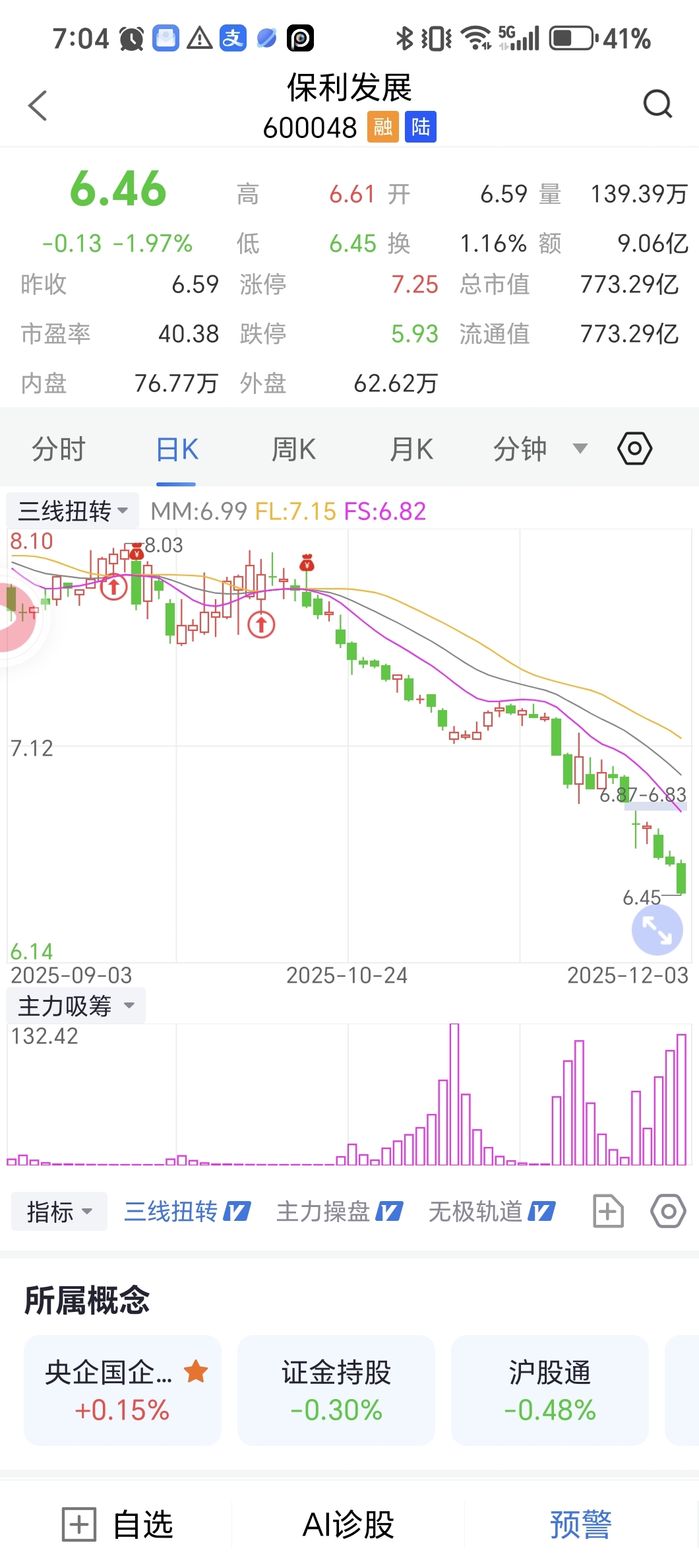 $保利发展(SH600048)$ 主力筹码还没吸够