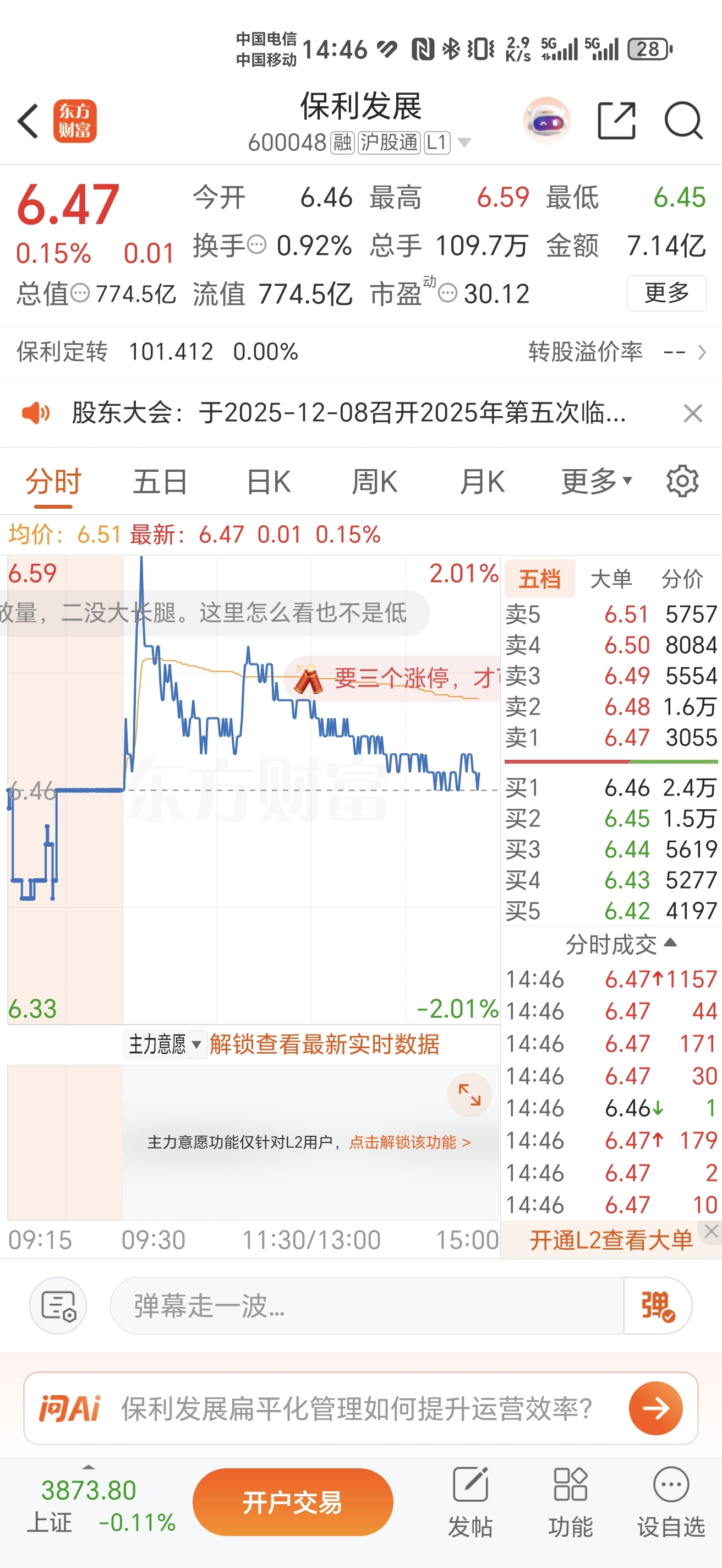 $保利发展(SH600048)$ 哈哈漂亮,今天涨一分钱,明天开始继续跌,管用手法。