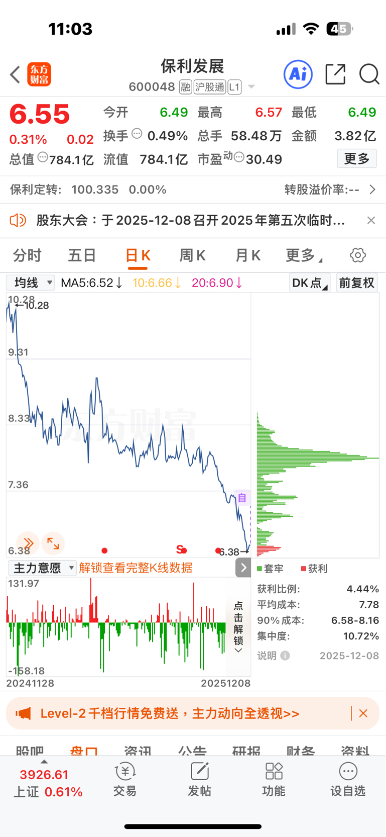 $保利发展(SH600048)$ 从峰值上看,底部就没有筹码密集,它拉什么,拉了你也交不出筹码。拉多了,又不划算。可想而知。