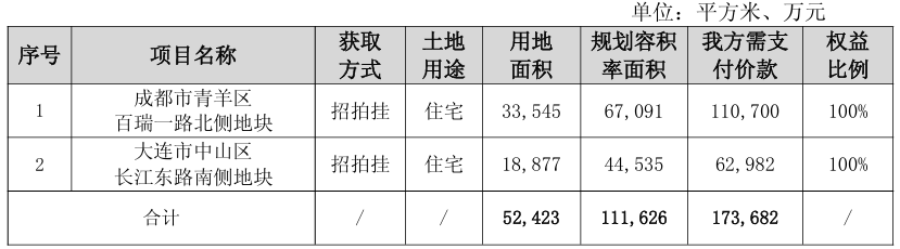 12月8日,保利发展(600048)发布公告,近日公司新增加房地产项目2个,分别为成都市青羊区百瑞一路北侧地块和大连市中山区长江东路南侧地块。