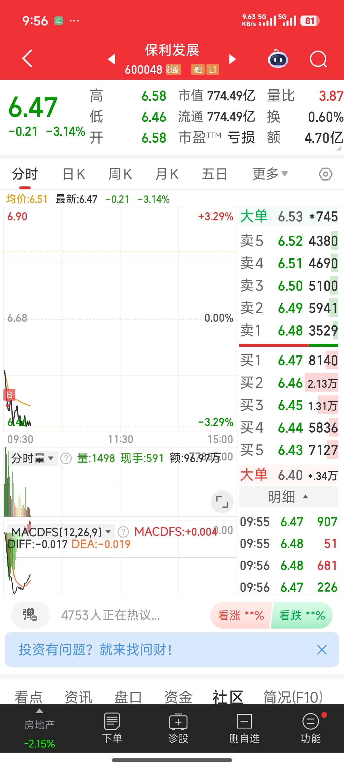 $保利发展(SH600048)$ 昨天减仓的,今天加回去了