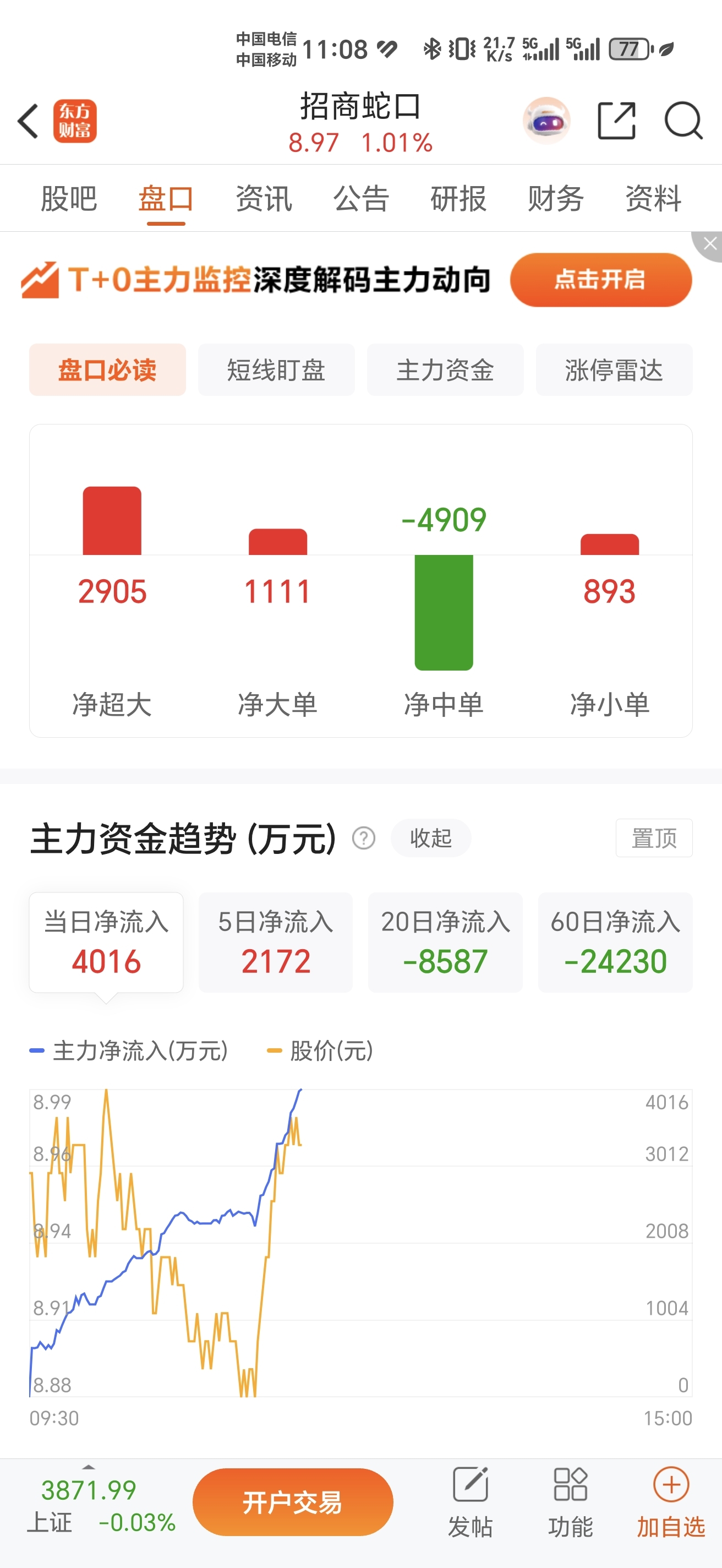 漂亮资金开始流向招商蛇口。继续三倍做空保利发展。主力们加油做空,散户加油抄底。