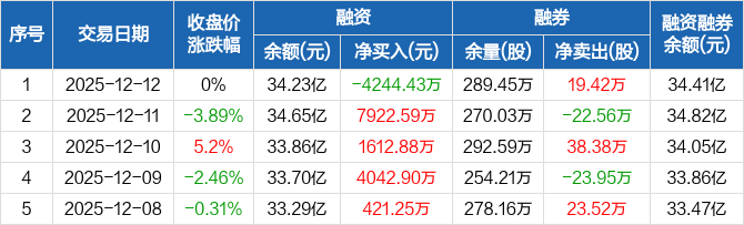 保利发展:融资净偿还4244.43万元,融资余额34.23亿元(12-12)