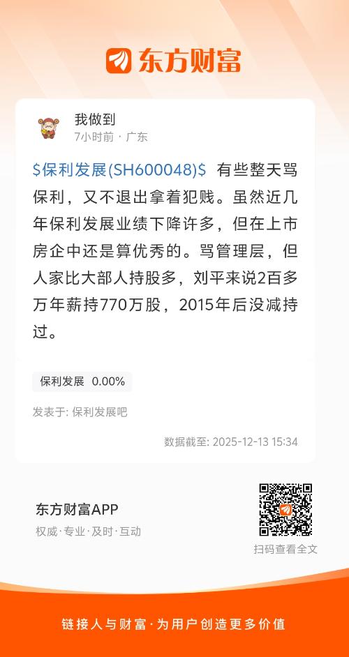 $保利发展(SH600048)$ 有些整天骂保利,又不退出拿着犯贱。虽然近几年保利发展业绩下降许多,但在上市房企中还是算优秀的。骂管理层,但人家比大部人持股多,刘平来说2百多万年薪持770万股,2015年后没减持过。