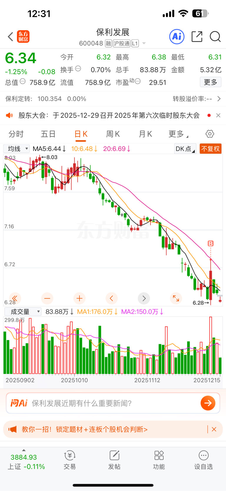 $保利发展(SH600048)$ 买在最高点,放我出去吧!